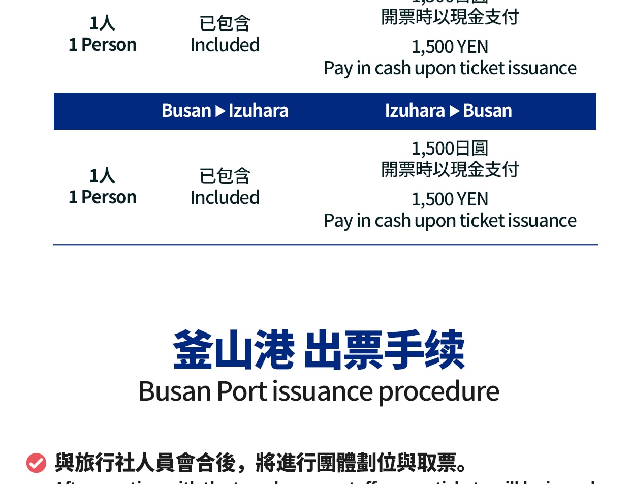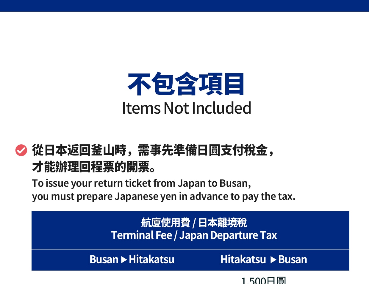 - 本產品不處理任何進出韓國或日本的簽證相關服務。購買者須自行負責所有移民和海關要求。請在預訂前確認您的簽證狀態。