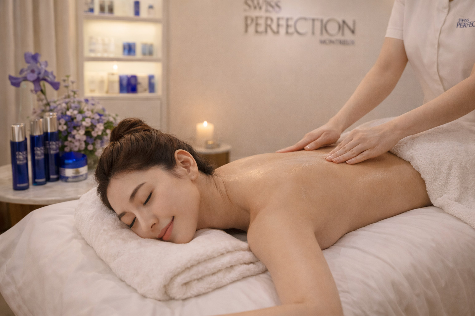 由瑞士研發的 Swiss Perfection 招牌療程,專注於恢復平衡、光澤與活力,同時緩解因飛行、步行和繁忙行程所造成的疲勞。