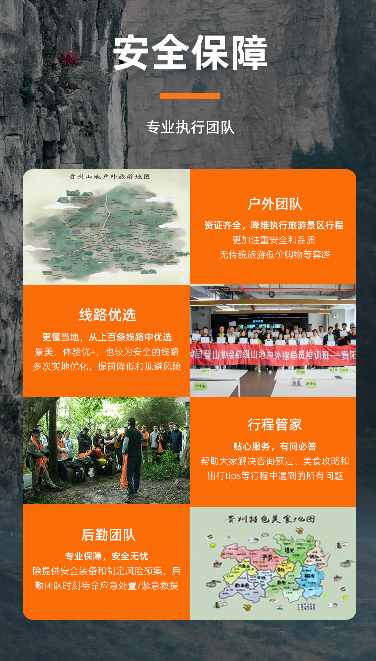- 後勤團隊:專業保障,安全無憂,除提供安全裝備和制定風險預案,後勤團隊時刻待命應急處置/緊急救援