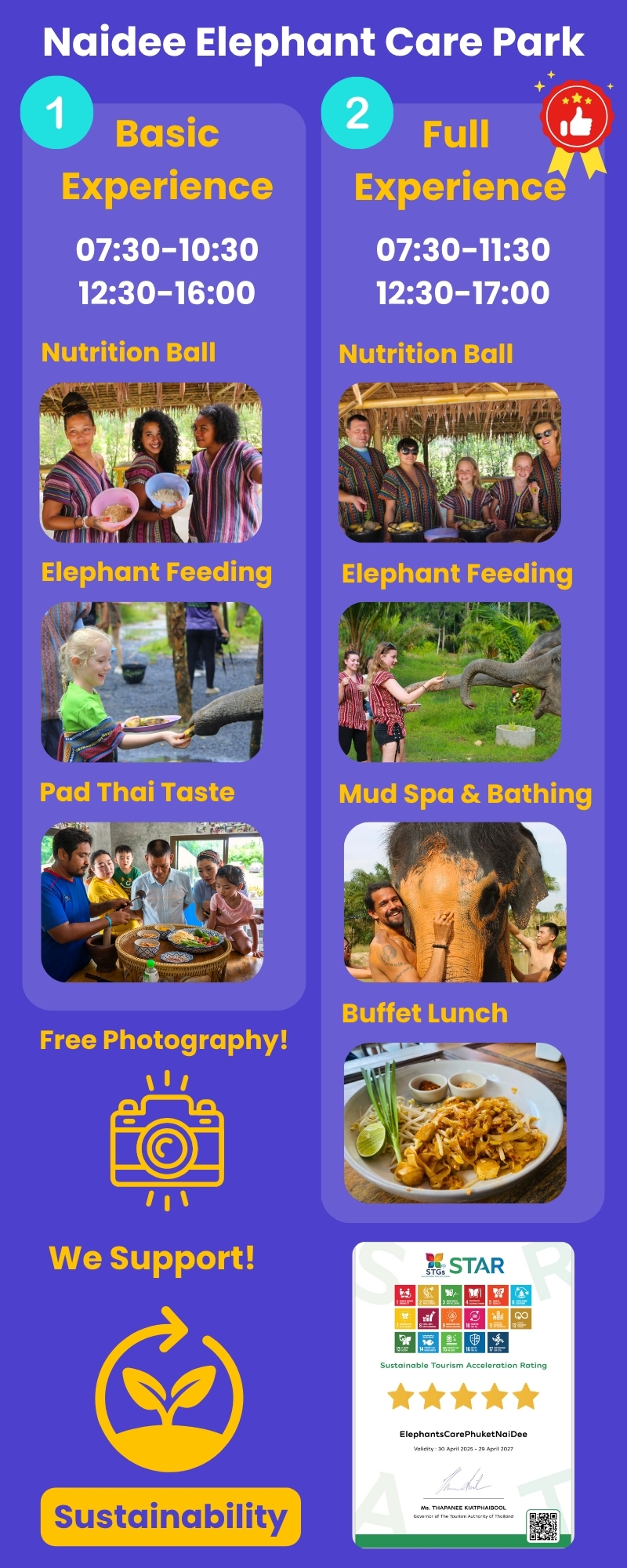 歡迎來到大象護理公園!在這裡,您將有難得的機會與溫馴的大象親密接觸。親手烹煮營養餐點、餵食牠們,並透過泥漿水療、沐浴和一起游泳,享受難忘的時刻。