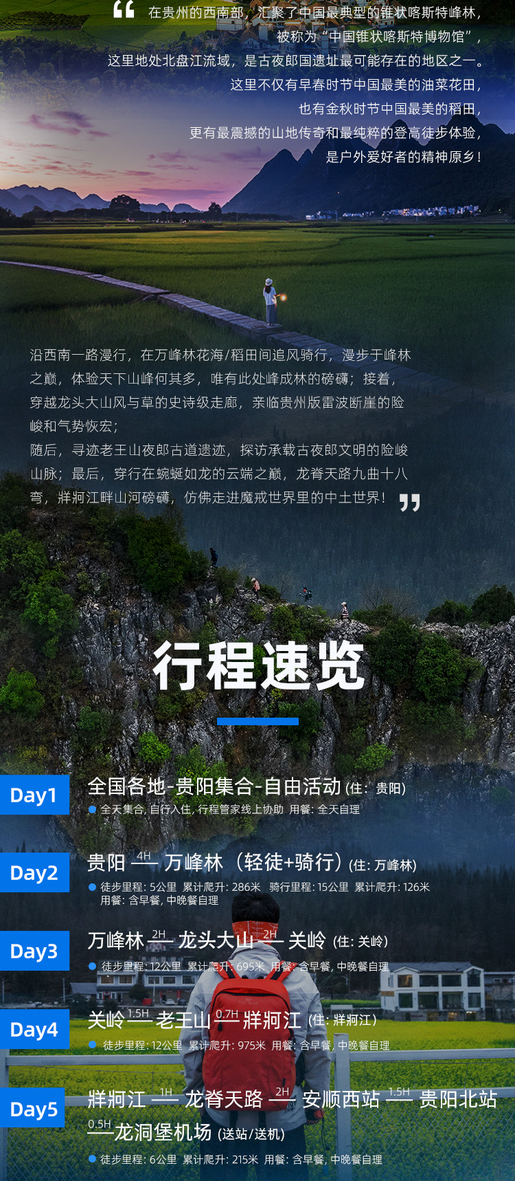 貴州萬峰林+龍頭大山+龍脊天路徒步5日遊