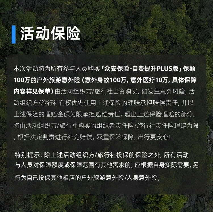 - 後勤團隊:專業保障,安全無憂,除提供安全裝備和制定風險預案,後勤團隊時刻待命應急處置/緊急救援