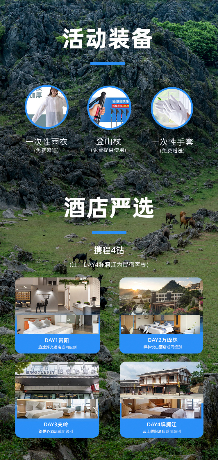 徒步里程:12公里,累計爬升:695米,用餐:含早餐,中晚餐自理 - Day4:關嶺-車程1.5h-老王山-車程0.7h-牂牁江(住:牂牁江)