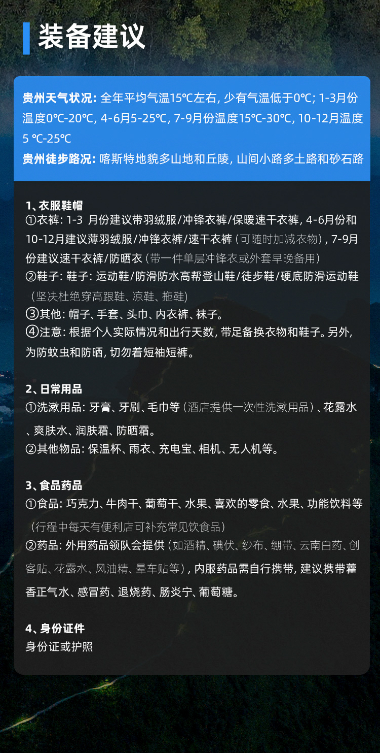 - 戶外團隊:資證齊全,降維執行旅遊景區行程,更加註重安全和品質,無傳統旅遊低價購物等套路