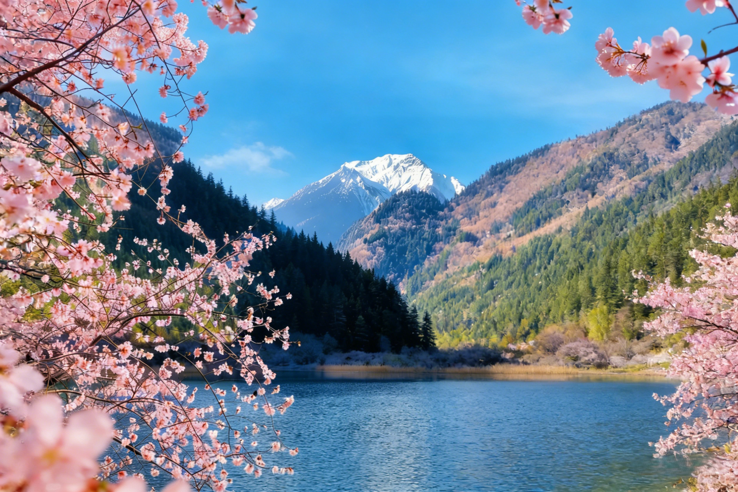 海拔 3060米的冰川堰塞湖,九寨溝最長、最大的海子。雪山+森林+白雲同框,大氣磅礴。