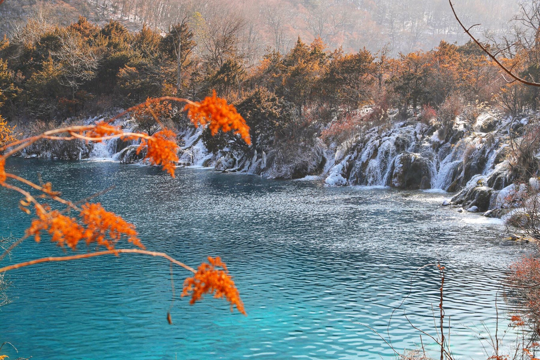 九寨溝最小卻最豔麗的海子,6深水一眼見底,陽光角度不同呈現藍綠橄欖金交替,冬季也不結冰。