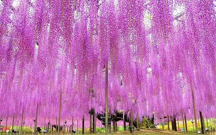在日立海濱公園的見晴之丘,欣賞 530 萬朵盛開的粉蝶花,這是日本規模最大的花海之一。足利花卉公園則有超過 350 株紫藤樹爭相綻放,打造出令人驚嘆的壯麗花卉景觀。