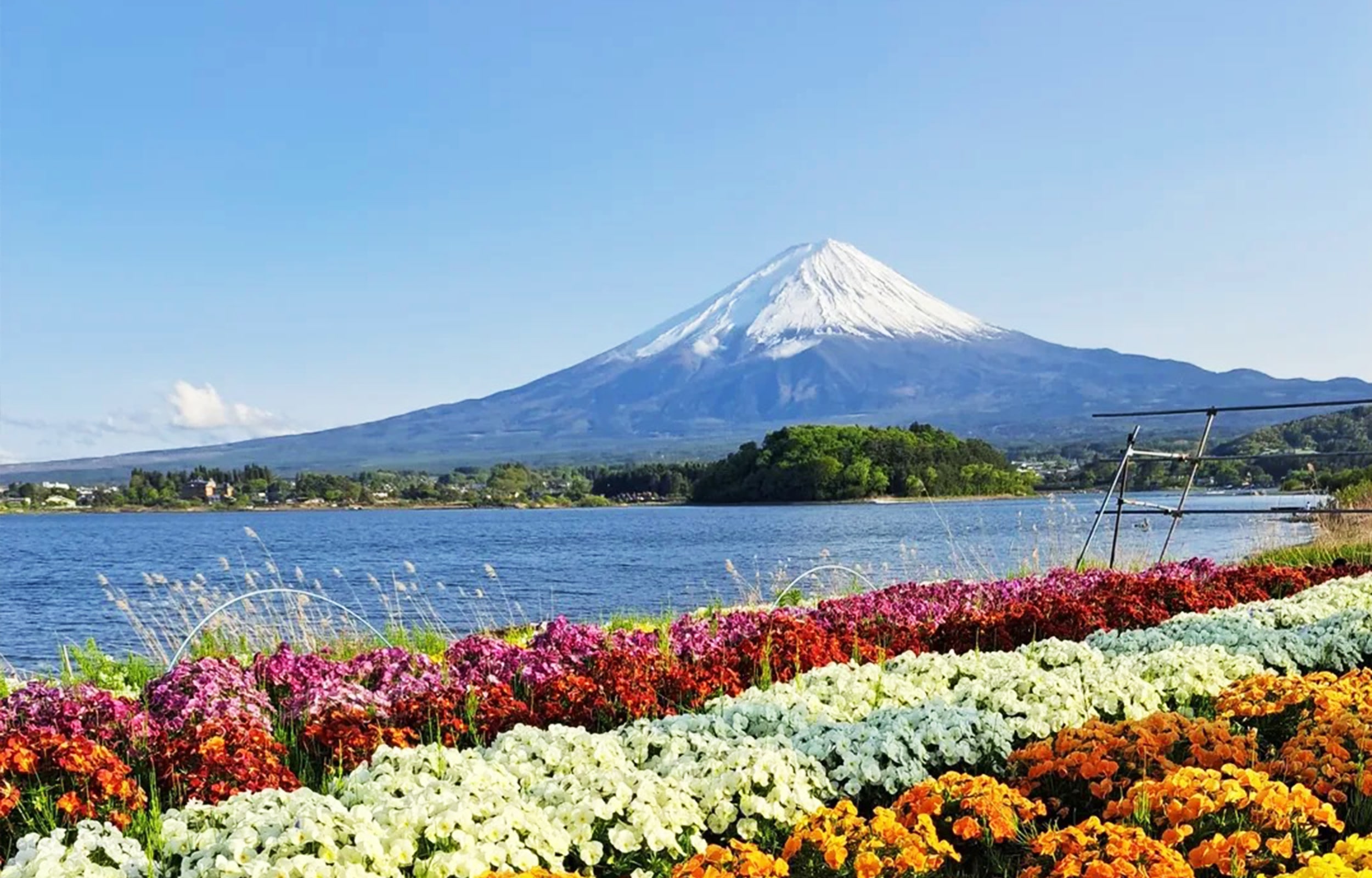 - 河口湖大石公園:花海鋪向富士山,漫步湖畔公園,當季的花毯熱烈地鋪展,盡頭便是無遮無攔的富士全景。