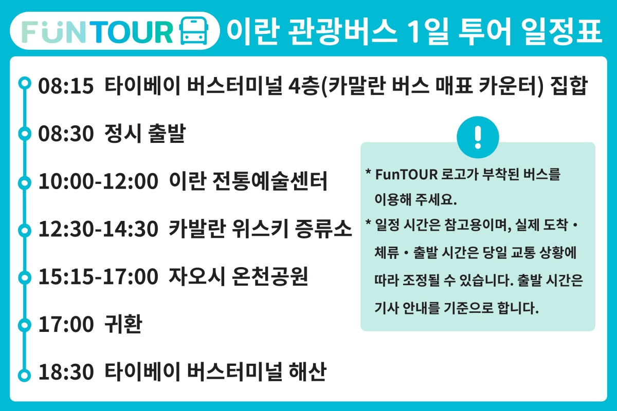 - 本行程無法更改巴士停靠點,實際停留/出發時間可能依路況有所調整,請依司機手舉牌為主。