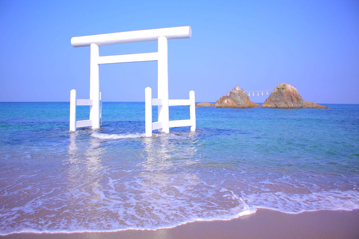 - 浪漫結緣聖地巡禮,在夫婦巖純白鳥居前祈求良緣美滿