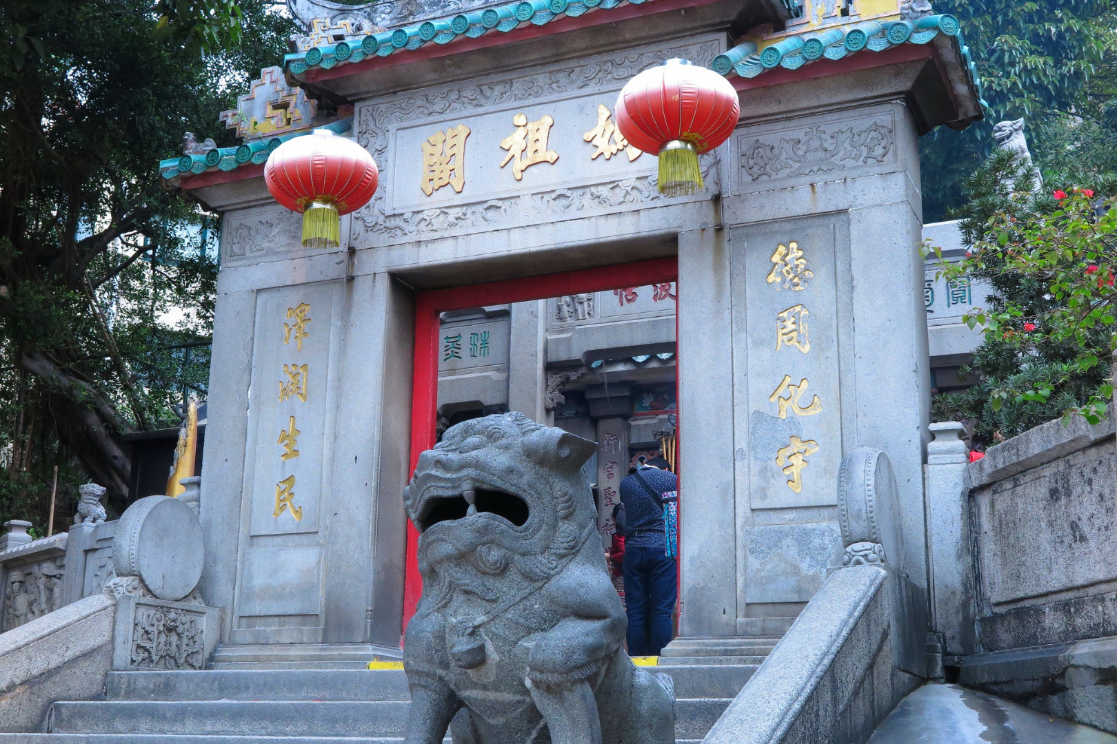 在媽閣廟探索當地故事,據說澳門之名便源於此,並在觀音像欣賞迷人景緻。