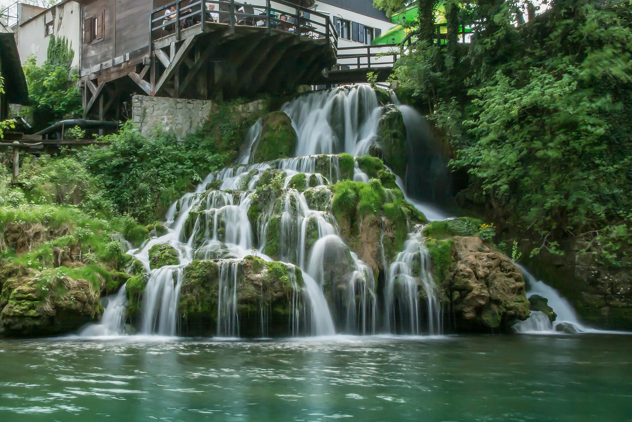 弧形堤壩上傾瀉而下的水簾,如銀絲編織的珠簾,搭配周圍蔥鬱的森林,彷彿闖入仙境。