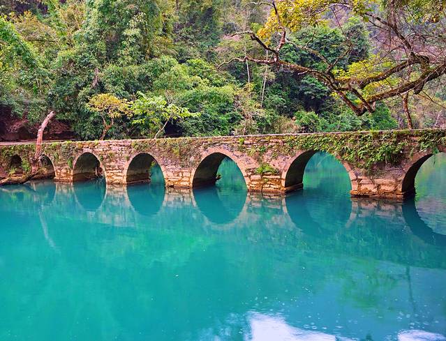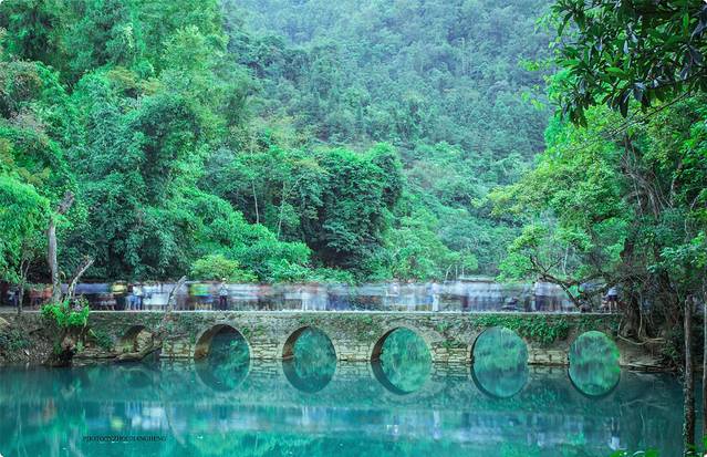 橫跨響水河的清代七孔石橋,橋身爬滿青藤,與水中倒影相映成趣。清晨薄霧時分,橋洞如七枚古錢幣串聯,潭水碧綠如玉,是攝影愛好者的絕佳取景地!