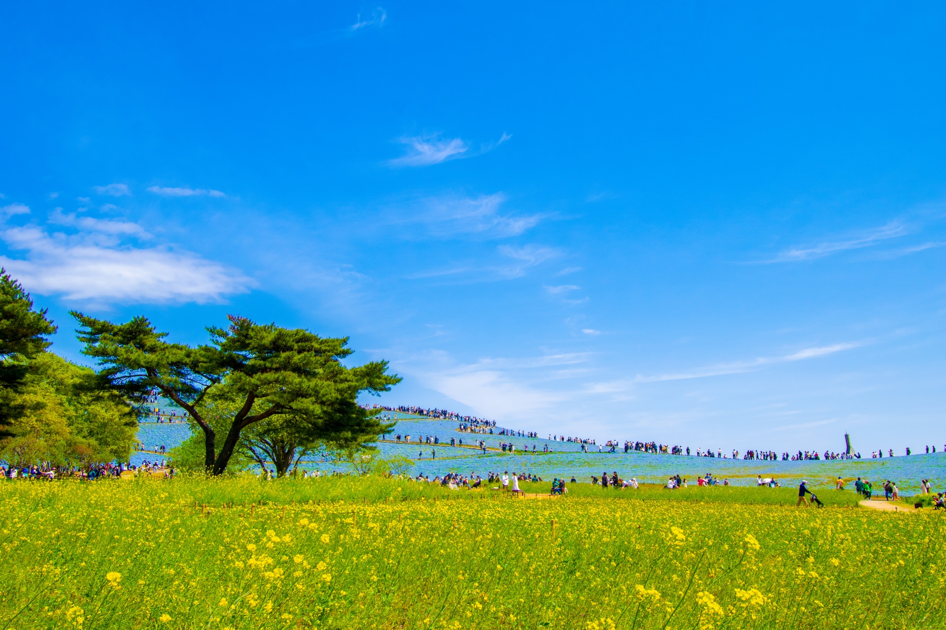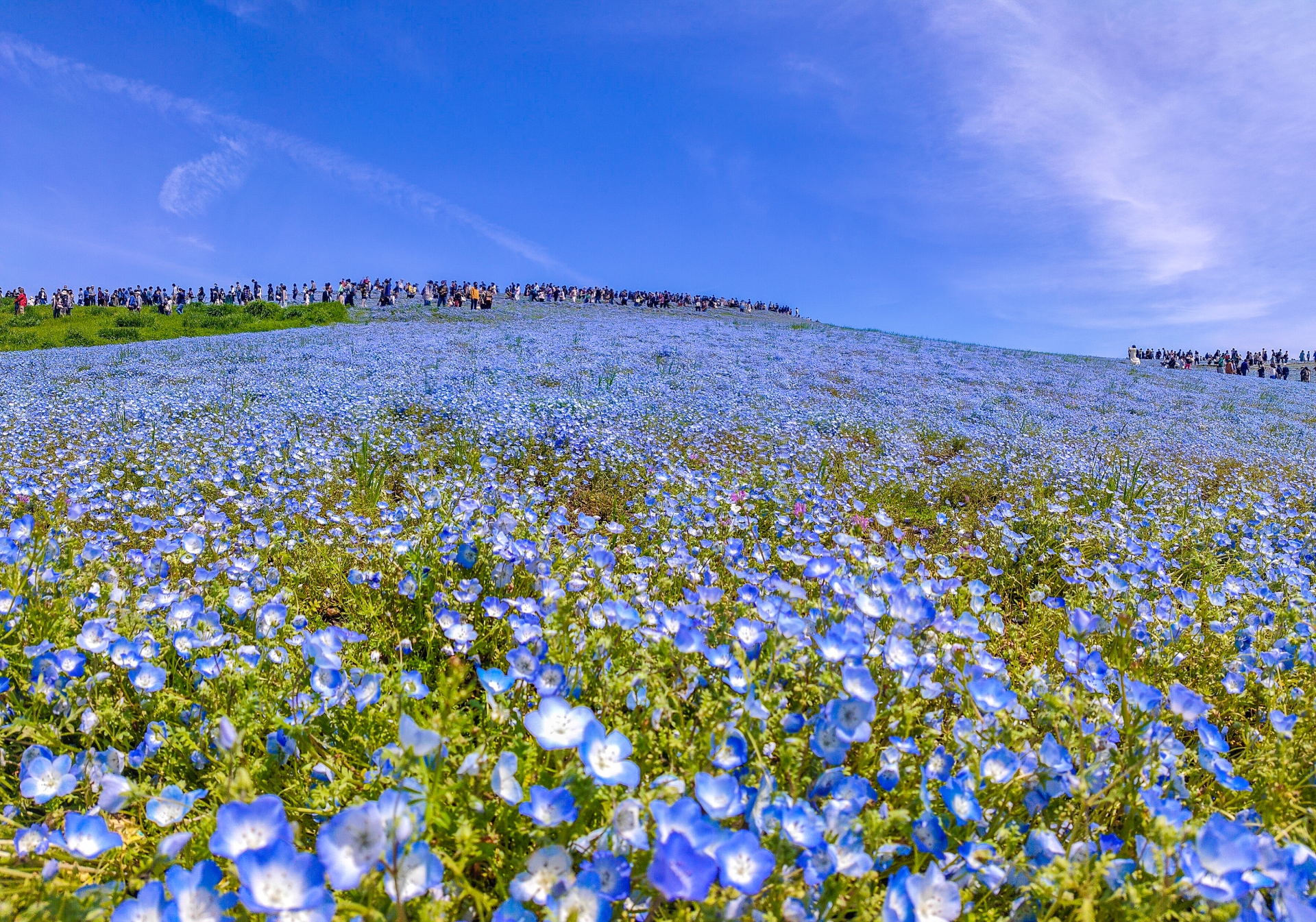 - 在国営ひたち海浜公園的春季景觀中,最著名的就是夢幻般的粉蝶花花海。約 450萬株粉蝶花 覆蓋整座見晴之丘,形成壯麗的藍色花海,此外,園內還有 27萬株鬱金香 和 100萬株水仙花 也盛開綻放。