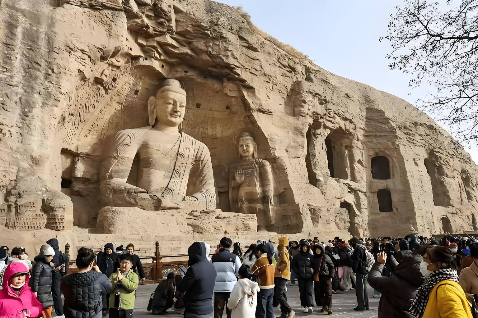 山西雲岡石窟的雕刻以雄渾壯闊的北魏風格著稱,佛像、菩薩與伎樂天人等造像或莊嚴靜穆或靈動飄逸,融合印度犍陀羅藝術與中原傳統技法,展現出多元文化交融的千年藝術史詩。