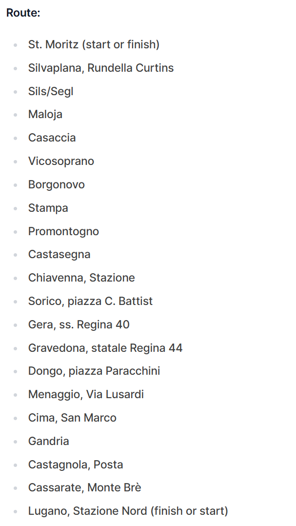 - 途經錫爾瓦普拉納湖和錫爾斯湖,欣賞令人驚嘆的阿爾卑斯山周圍景色。