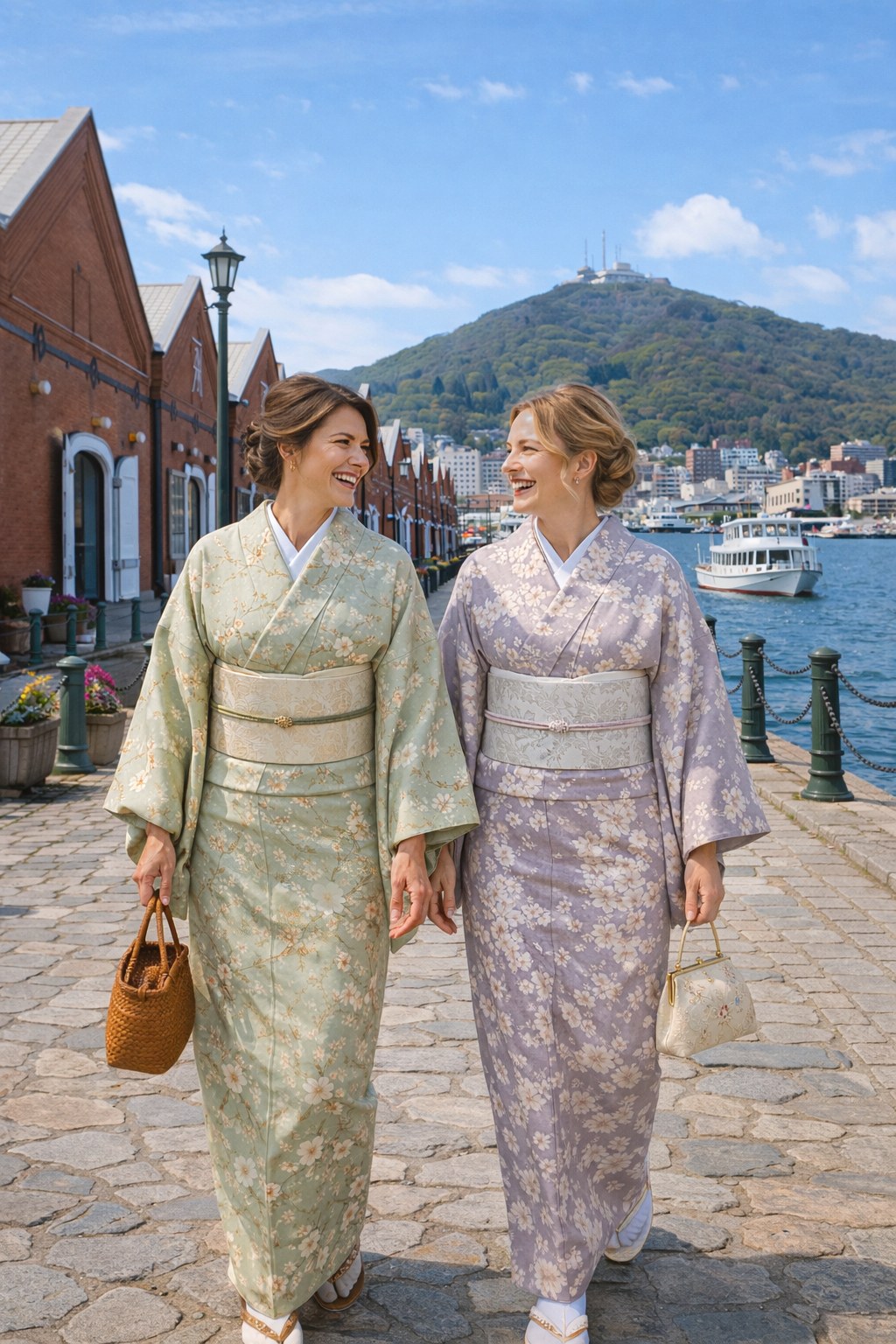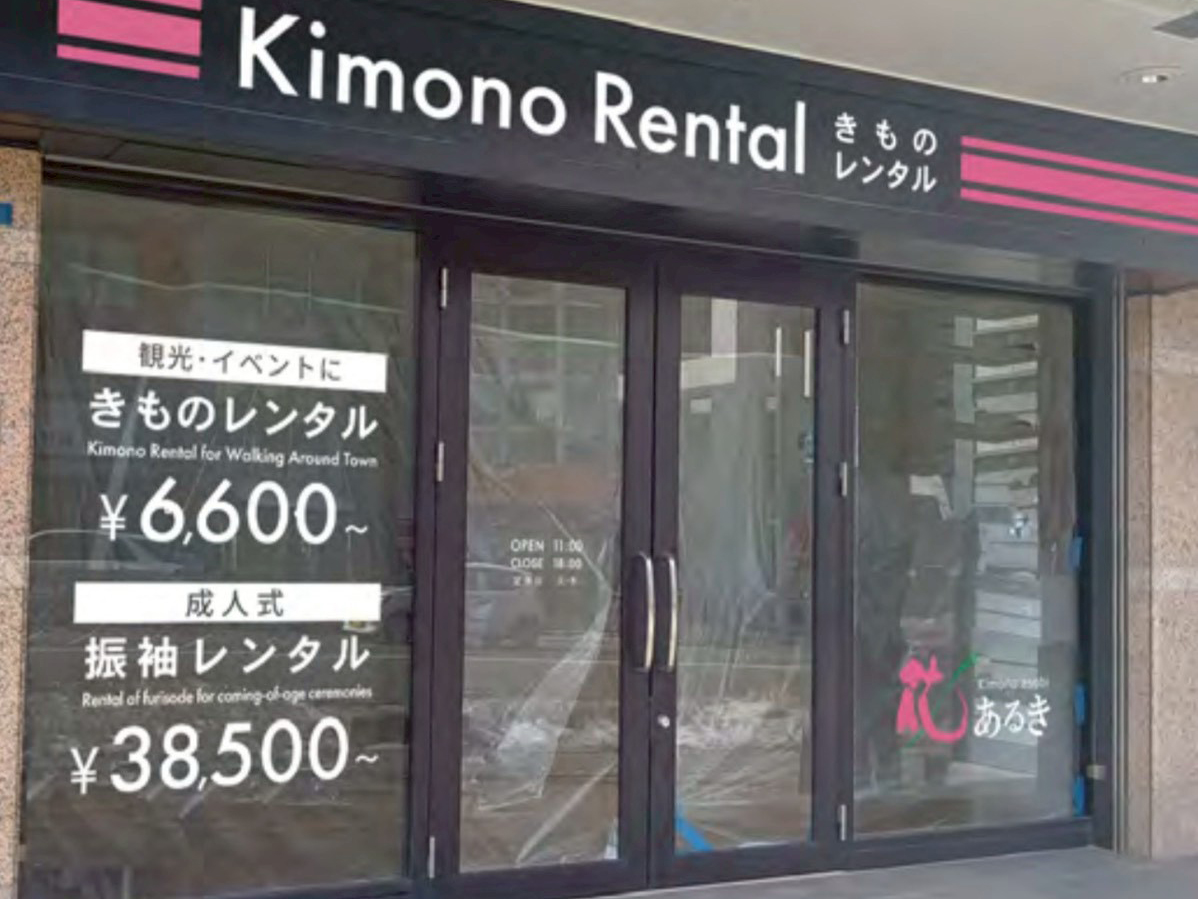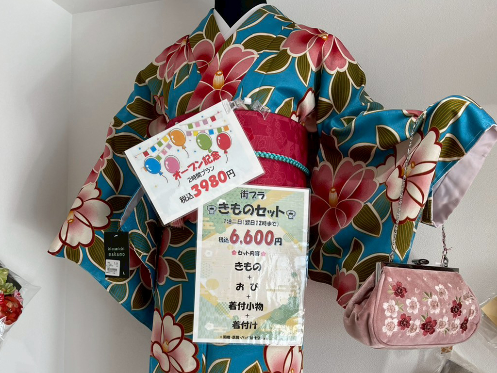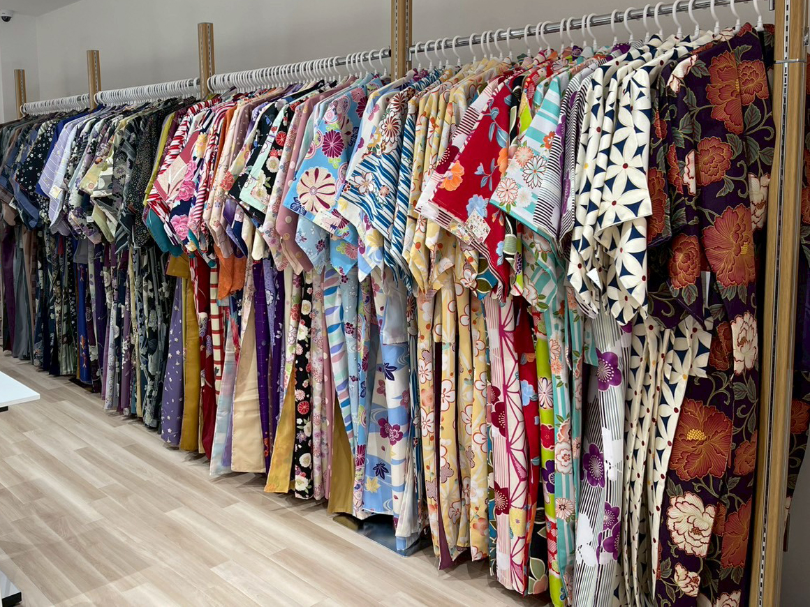 提供多種和服選擇,從休閒款式到正式禮服應有盡有,還有各式配件如草履、髮飾和手提包。