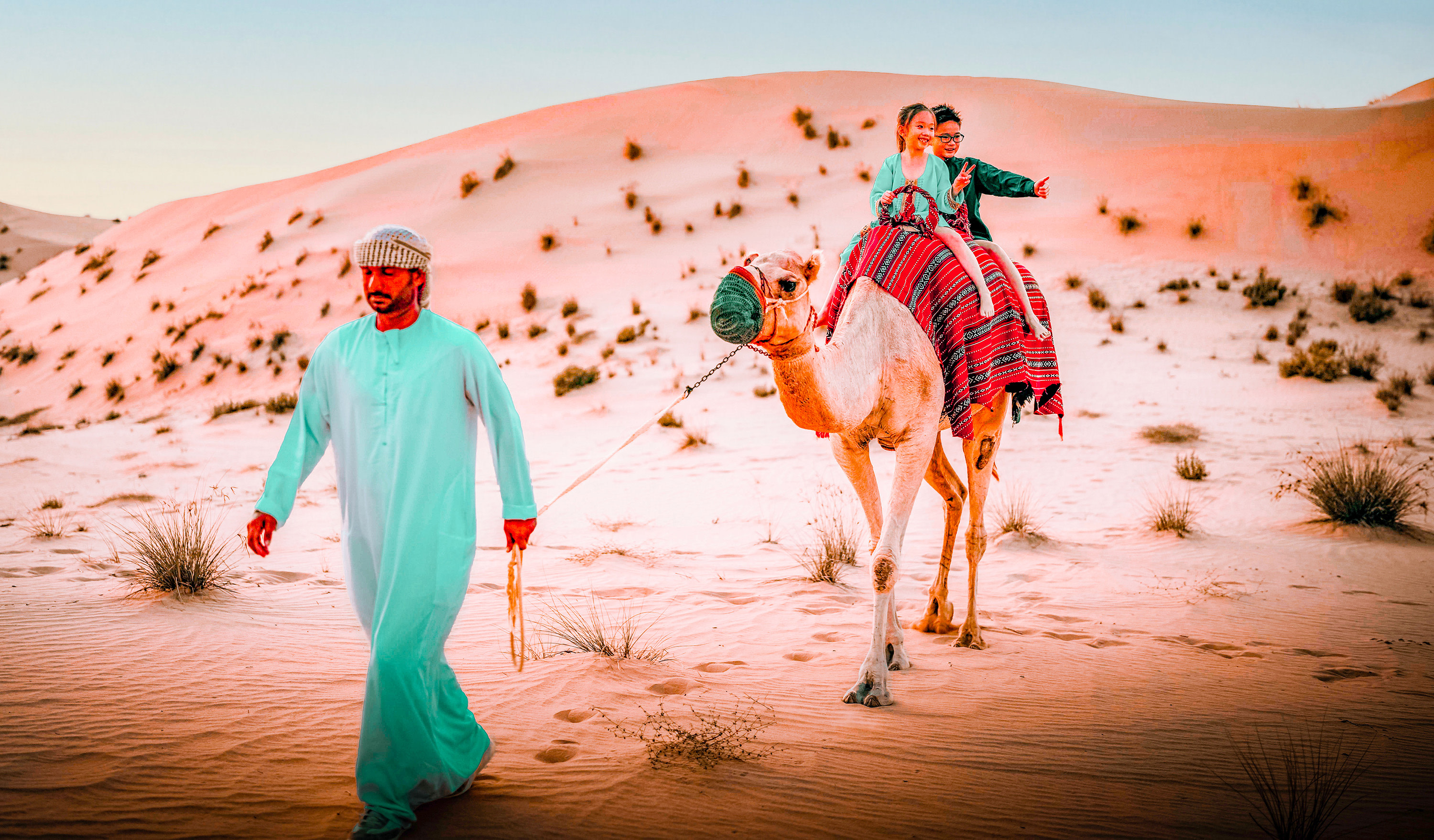展開精彩的一天,從刺激的早晨沙漠探險之旅開始!搭乘豪華四輪傳動 Land Cruiser,從您位於阿布達比的飯店出發,體驗衝沙的快感。在沙漠的沙丘上安全地上下馳騁,感受無比的刺激。之後,騎上駱駝,飽覽四周壯麗的景色。別忘了在騎乘過程中多拍些照片,將這些美景永遠珍藏。最後,以滑沙為這次的旅程畫下完美的句點。感受涼爽的沙漠風,從美麗的金黃色沙丘上滑下。