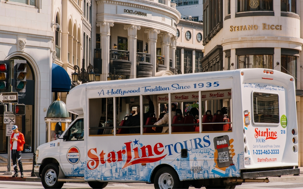 - 搭乘露天巴士,行經好萊塢地標、星光大道和羅迪歐大道