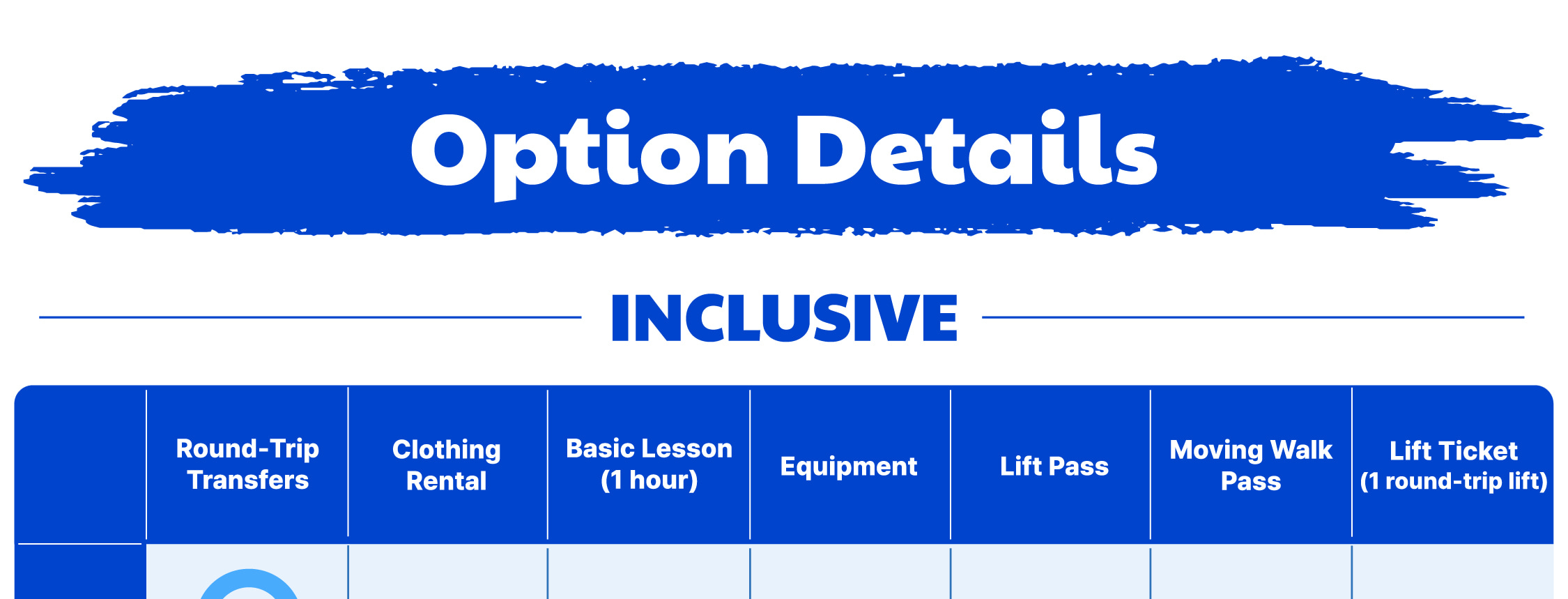 C方案:滑雪體驗+纜車通行證+滑雪服裝(外套、褲子)+1小時基礎課程