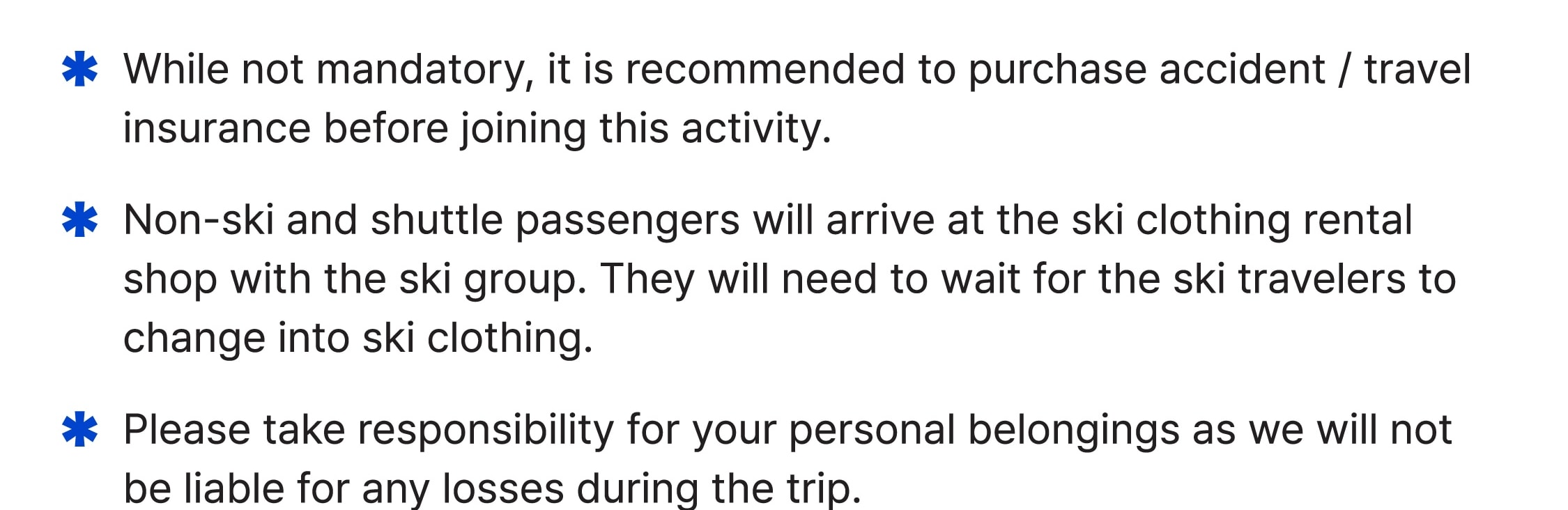 快來參加Elysian滑雪之旅,在雪地上盡情享受美好時光!我們的行程將帶您前往風景優美的山區,您可以在柔軟的雪道上享受滑雪的樂趣。如果您是滑雪新手,別擔心,我們有友善的導遊和您需要的所有裝備。無論您是與家人或朋友同行,Elysian滑雪之旅都是享受冬季和獲得無窮樂趣的完美方式!