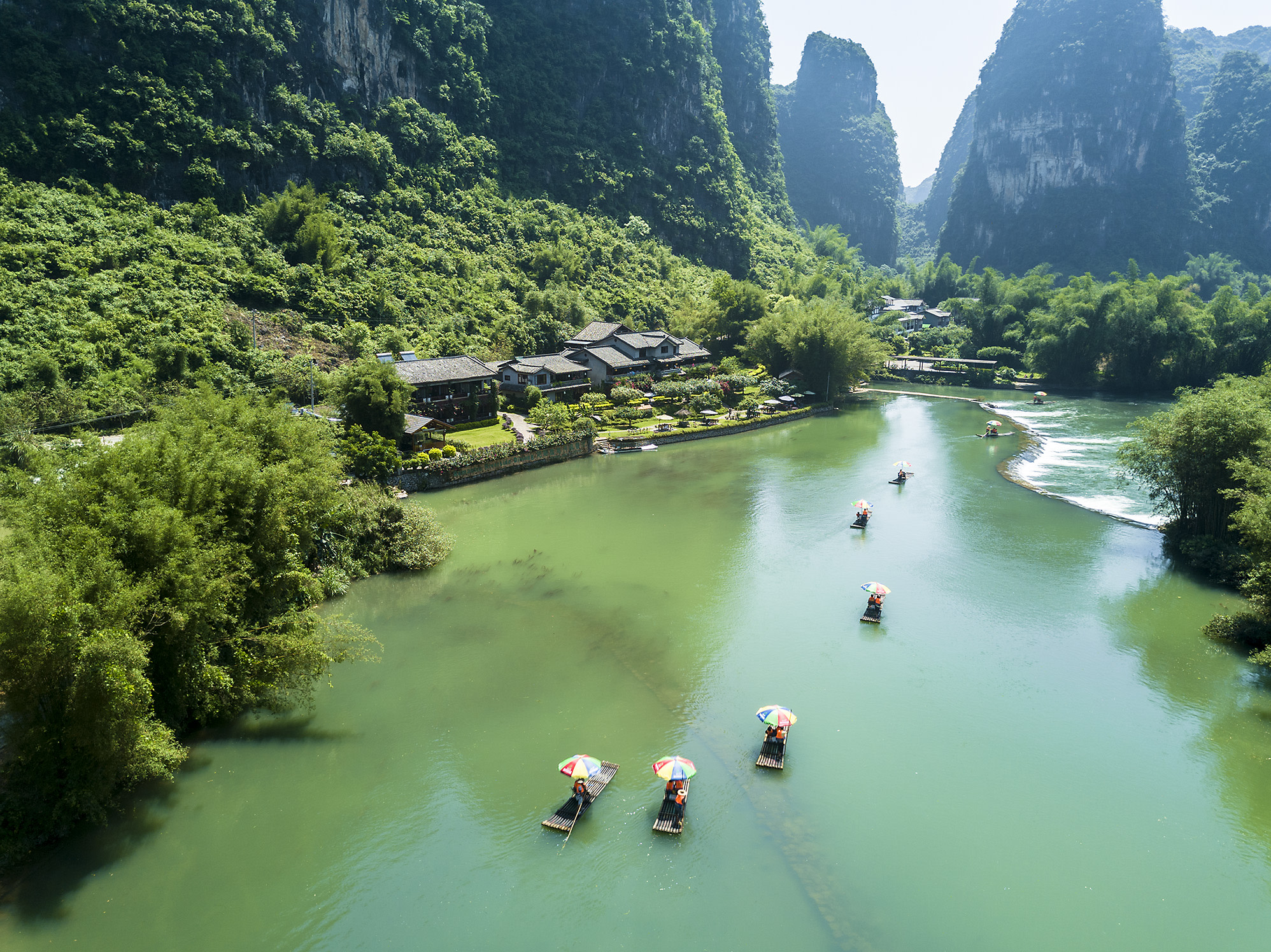 - 徜徉在清澈湛藍的灕江上,來趟復古的竹筏之旅吧
