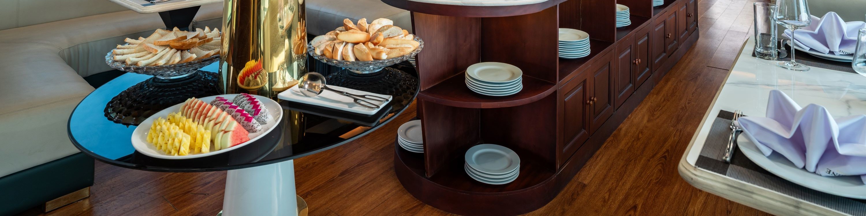 在甲板上享用豐盛的海鮮午餐,同時欣賞全景。我們精心策劃的菜單與新鮮的海風和雄偉的環境相得益彰。