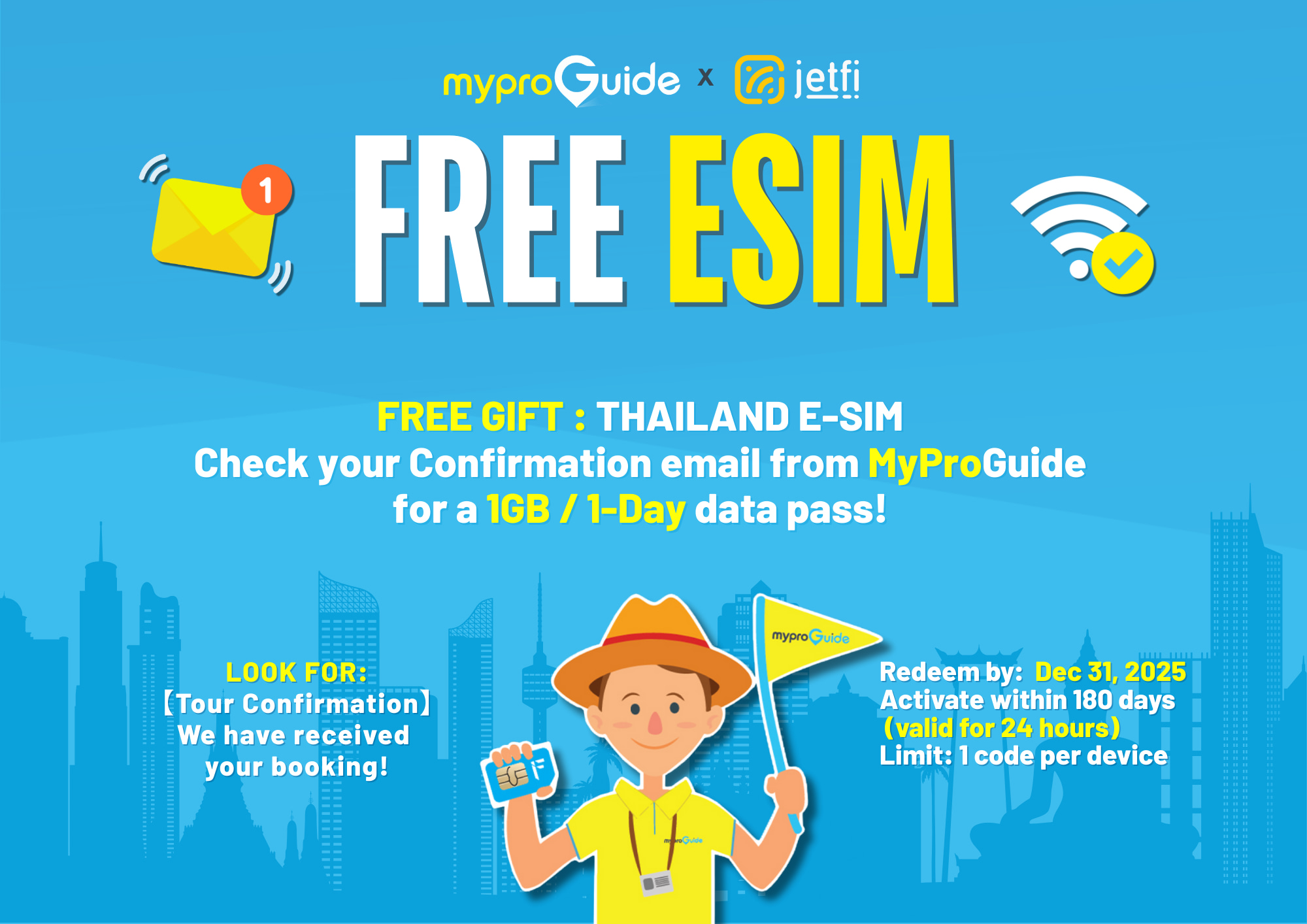 - 預訂完成後,請查看您的電子郵件以獲取E-SIM,主旨為:【Tour Confirmation】Congratulations! MyProGuide has received your booking in Thailand!!
