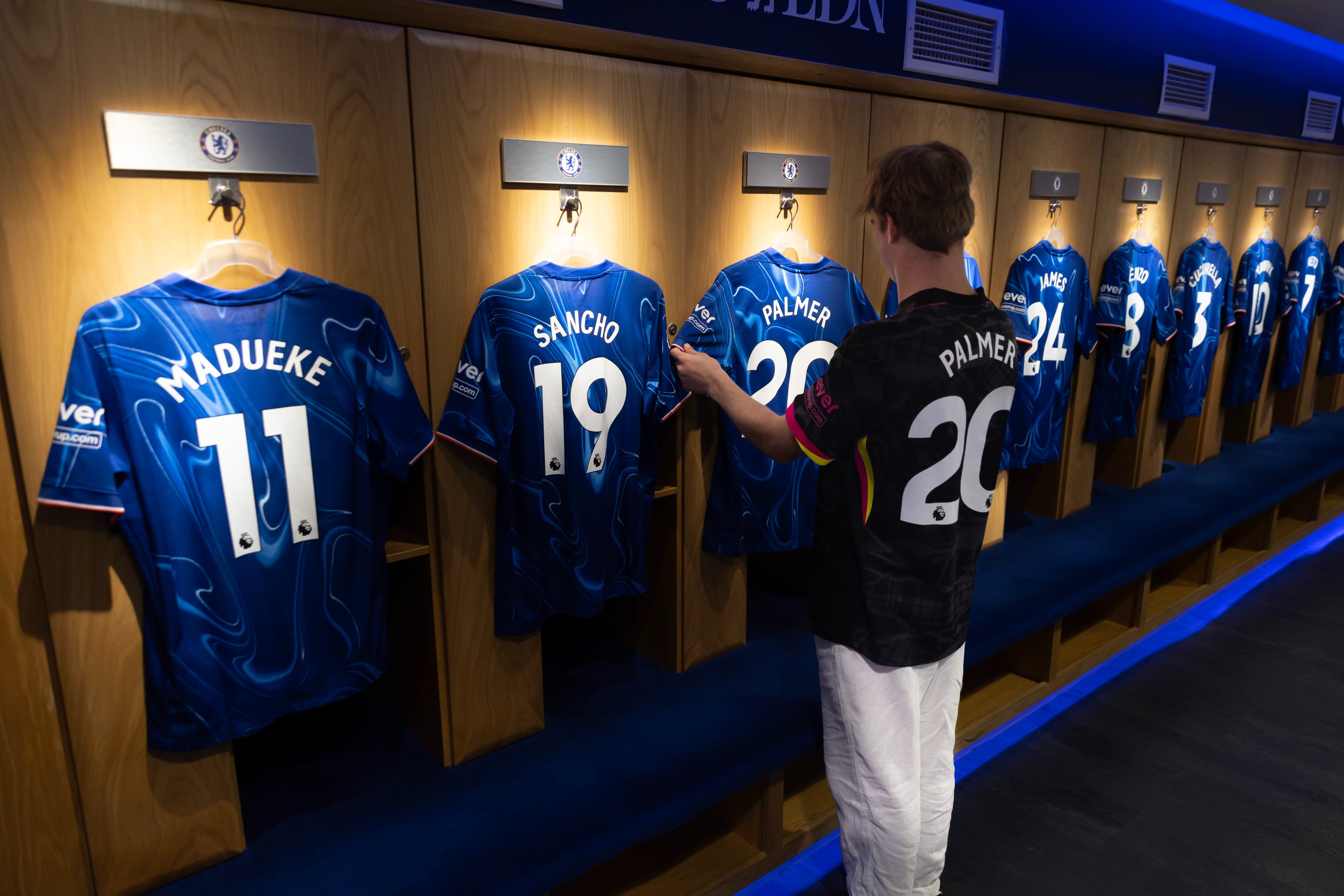- 想象一下傳奇球員在新聞發佈室接受採訪的情景,並驚歎於切爾西比賽服的展覽