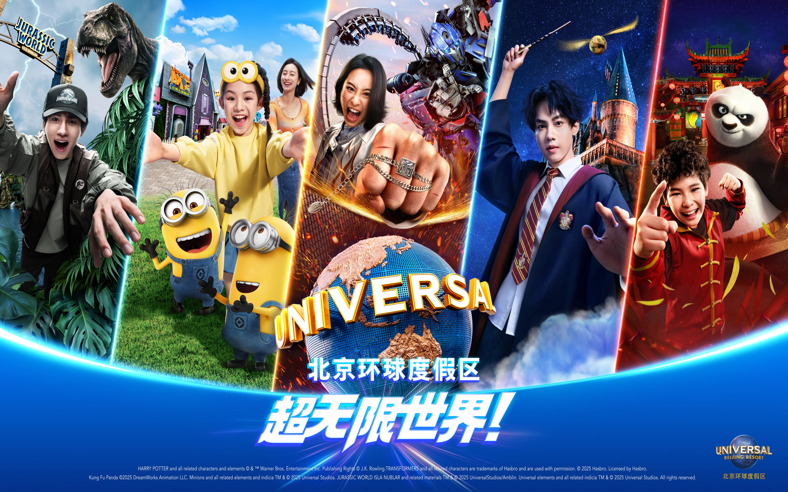 - 涵蓋 七大主題景區:功夫熊貓蓋世之地、變形金剛基地、小小兵樂園、哈利·波特的魔法世界等