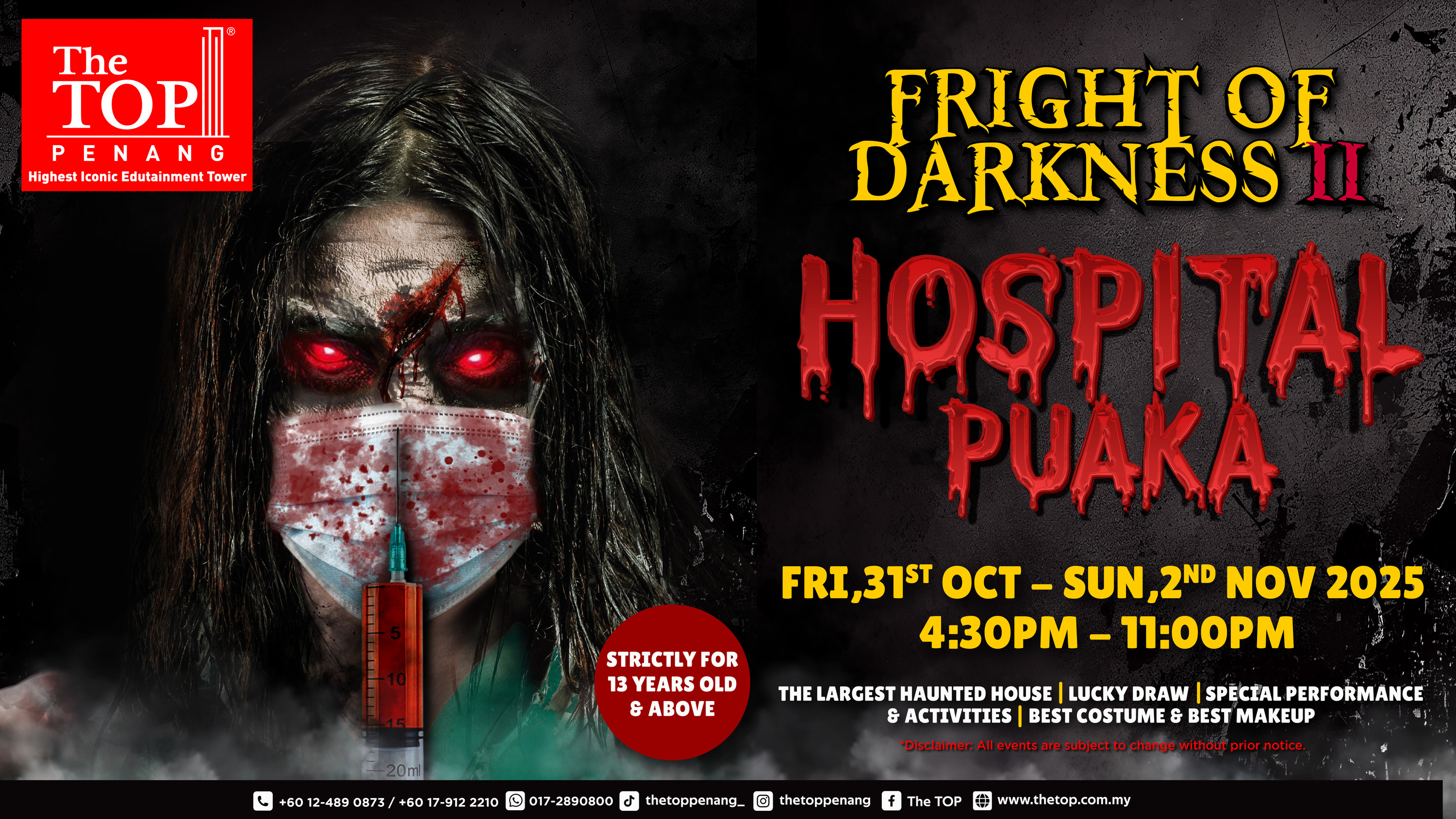 今年萬聖節,檳城光大觀景臺為您帶來檳城最大的鬼屋——Fright of Darkness 2: Hospital Puaka