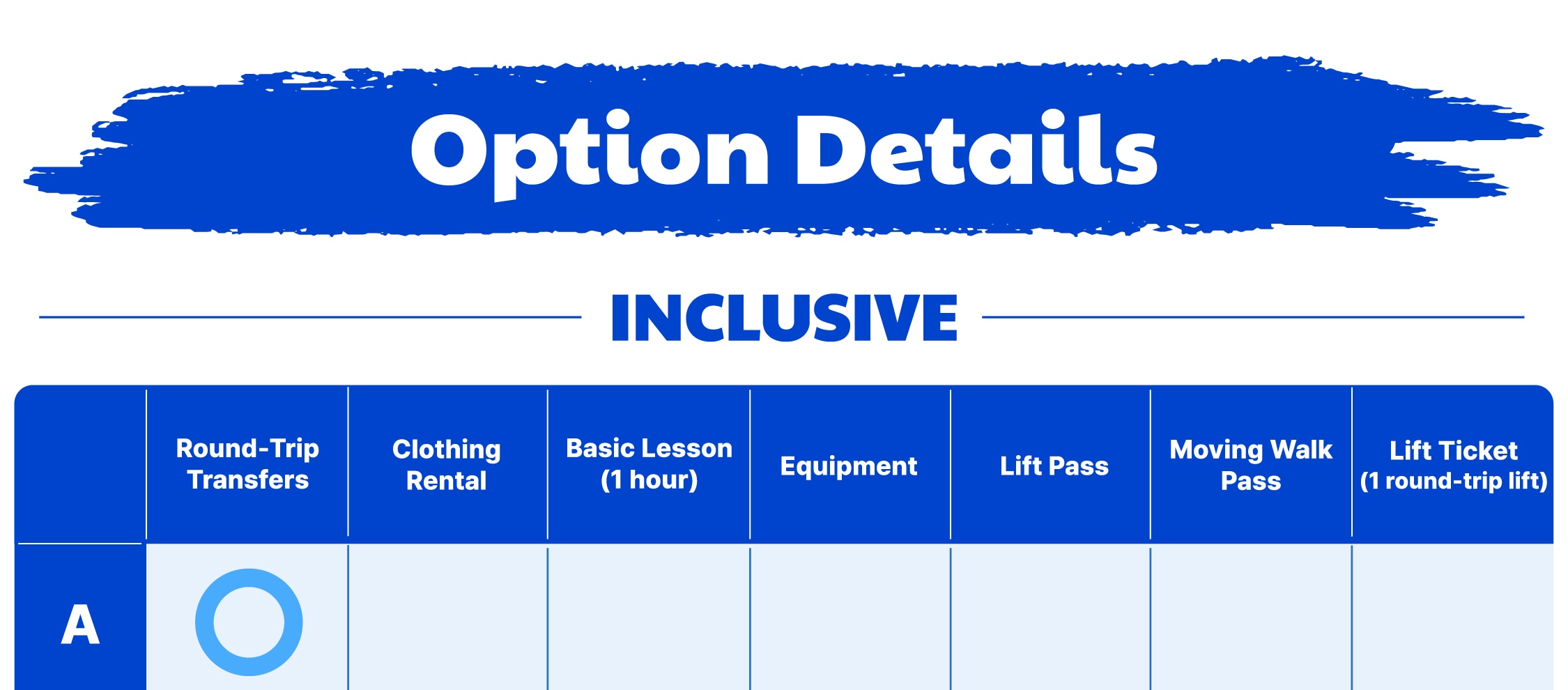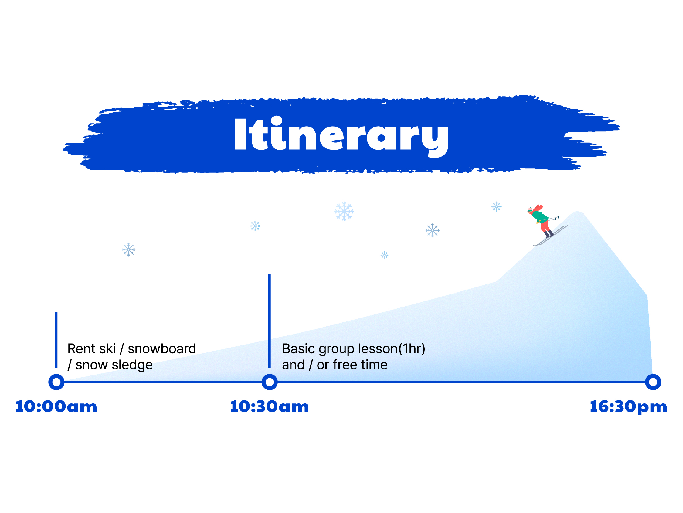 客製你的滑雪體驗,多種方案供你選擇,包括課程、裝備租賃、纜車通行證、移動步道通行證及雪橇。