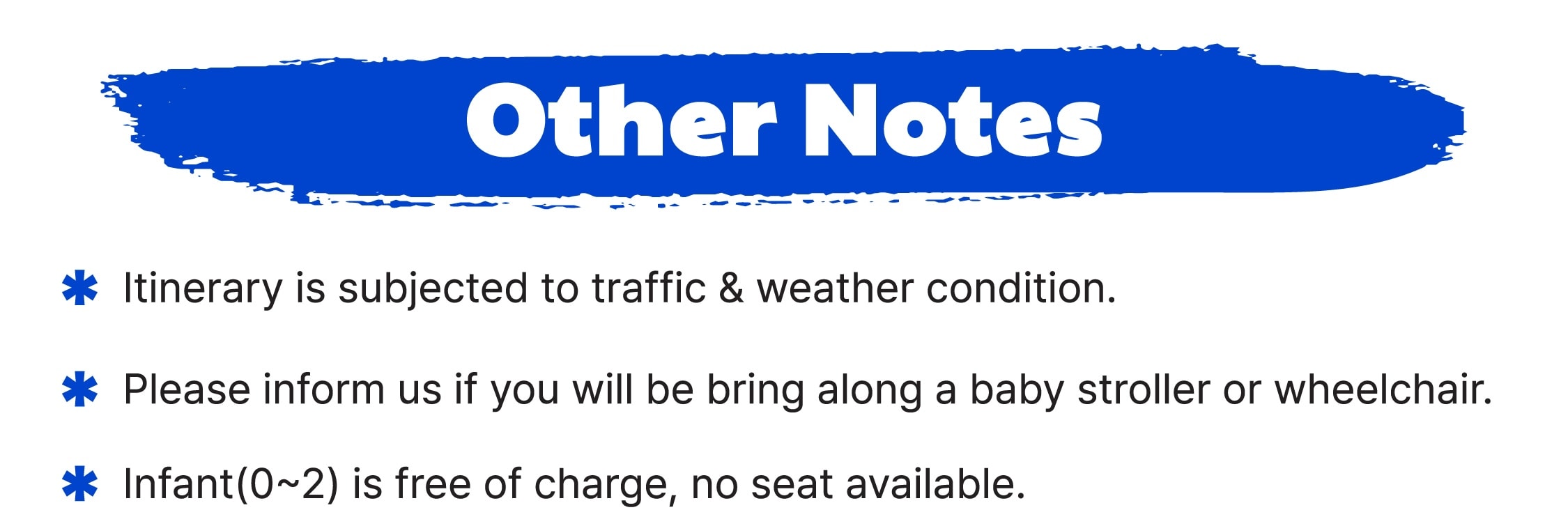 實際情況依您參加行程當天的巴士大小而定。建議您在行程前一天的韓國時間上午10:00後與我們聯繫。