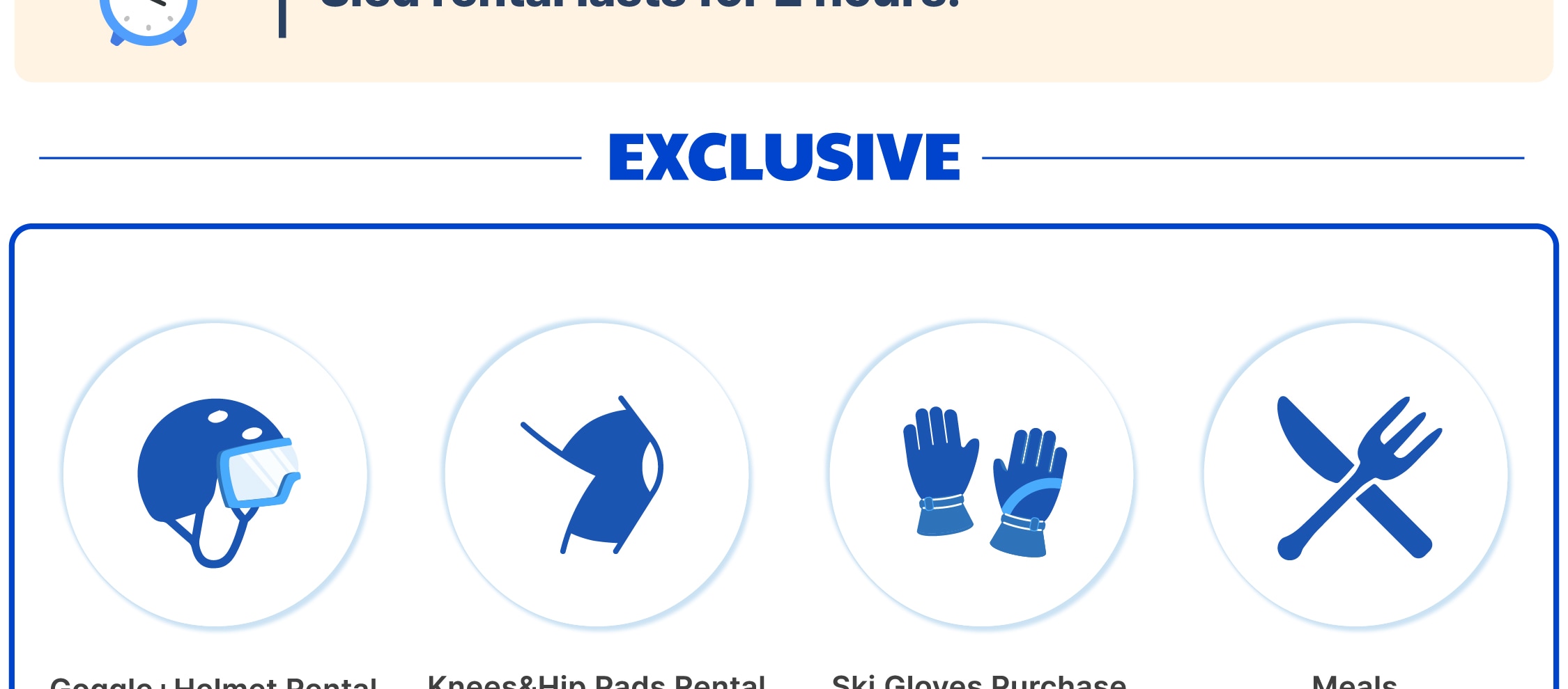H:觀光(1次來回纜車)+ 雪橇(2小時)+ 滑雪服裝 + 點心券