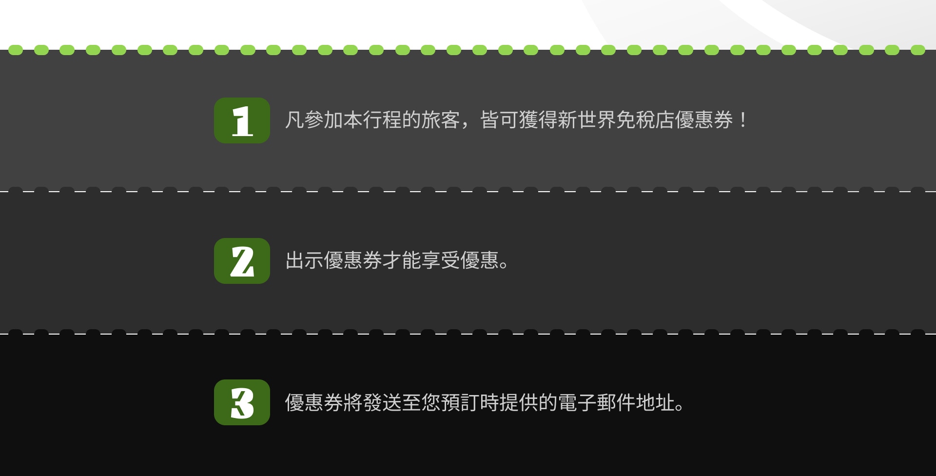 - 您可以選擇包含可選站點的旅遊:晨靜樹木園、鐵路自行車、燈光節、摘蘋果或草泥馬牧場。