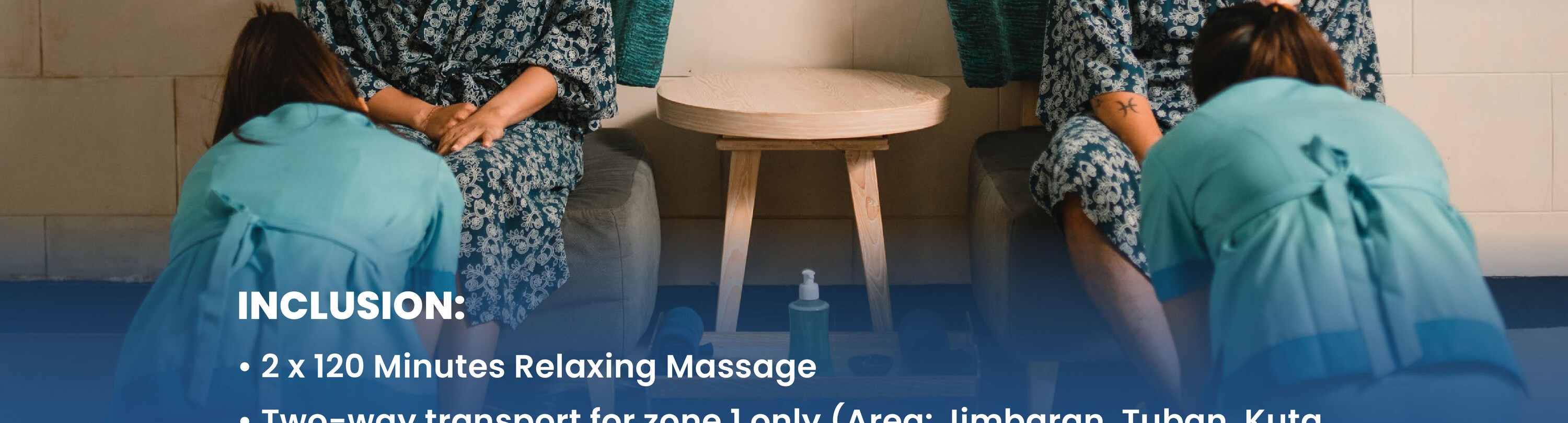- 1區(金巴蘭、圖班、庫塔、丹戎貝諾瓦、努沙杜瓦、勒吉安、烏魯瓦圖)的客人,最低消費滿600,000 IDR,即可享受免費單程交通(注意:您可以選擇接機或送機服務);最低消費滿1,100,000 IDR,即可享受免費雙程交通。您仍然可以享受其他區域(1區以外)的班車服務,只需支付與常規班車費用的差額即可。