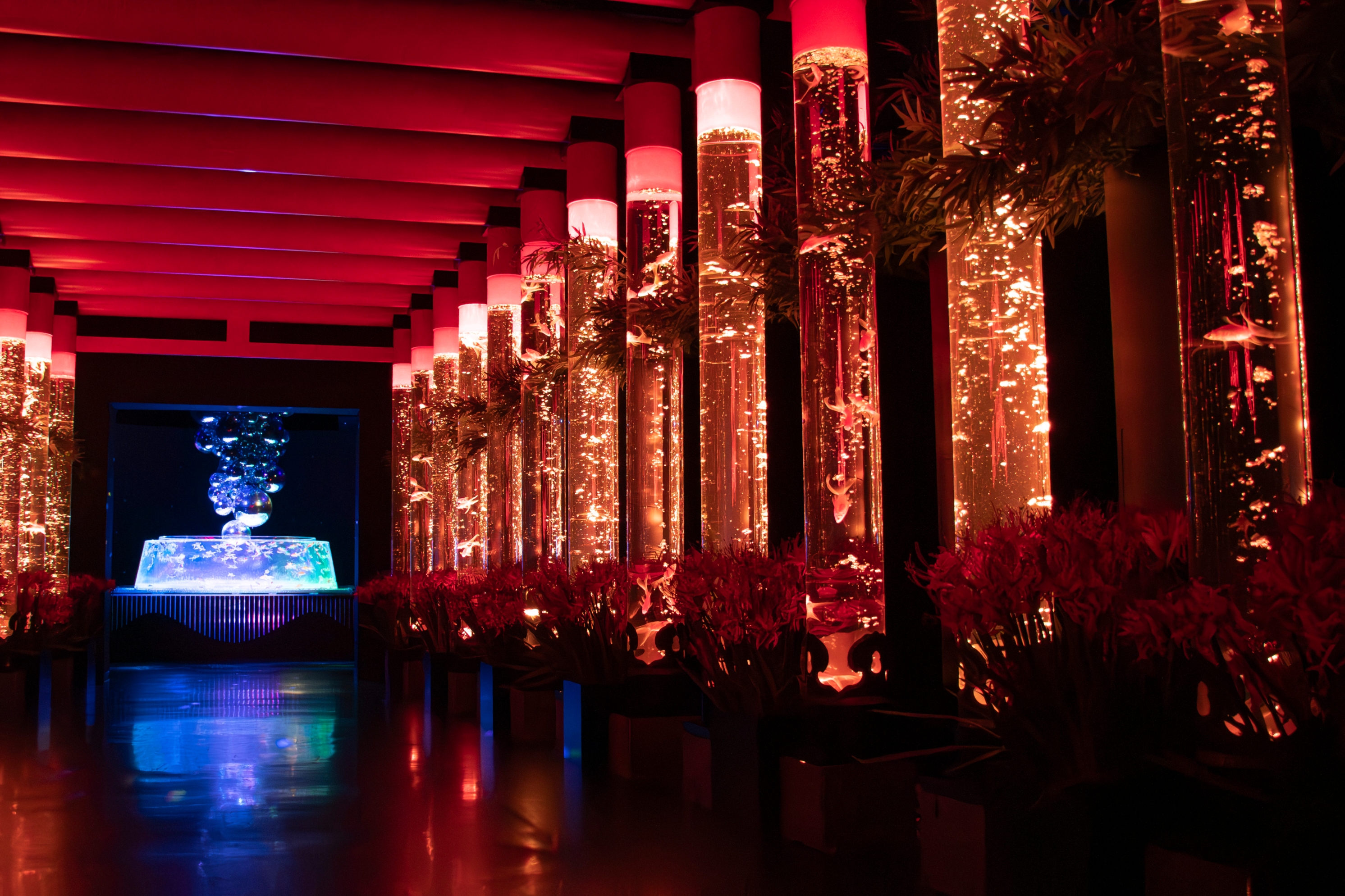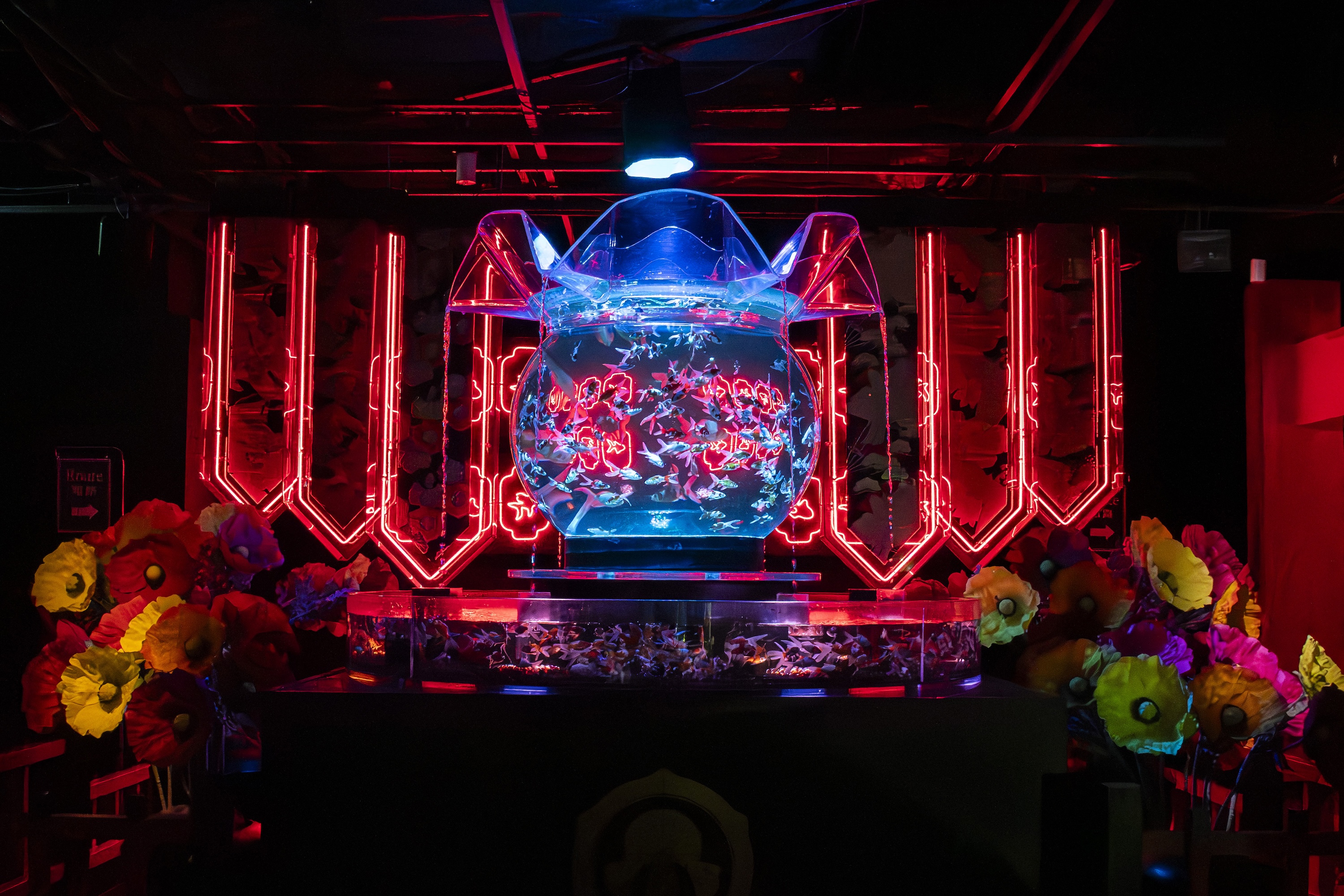 .巧妙結合高科技聲光效果、裝置藝術設計與水族館於一體,共同演繹一場如夢似幻的金魚藝術展