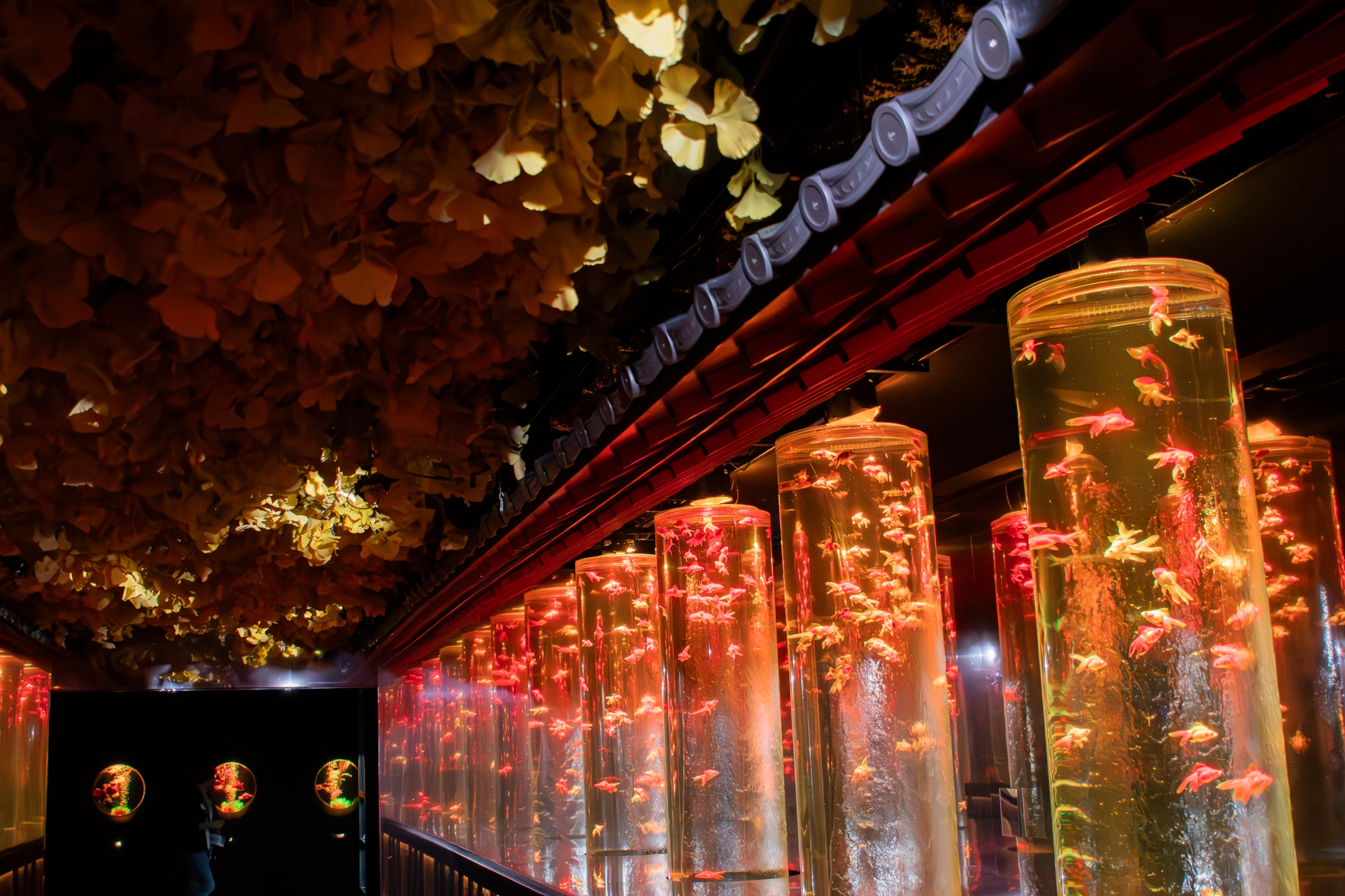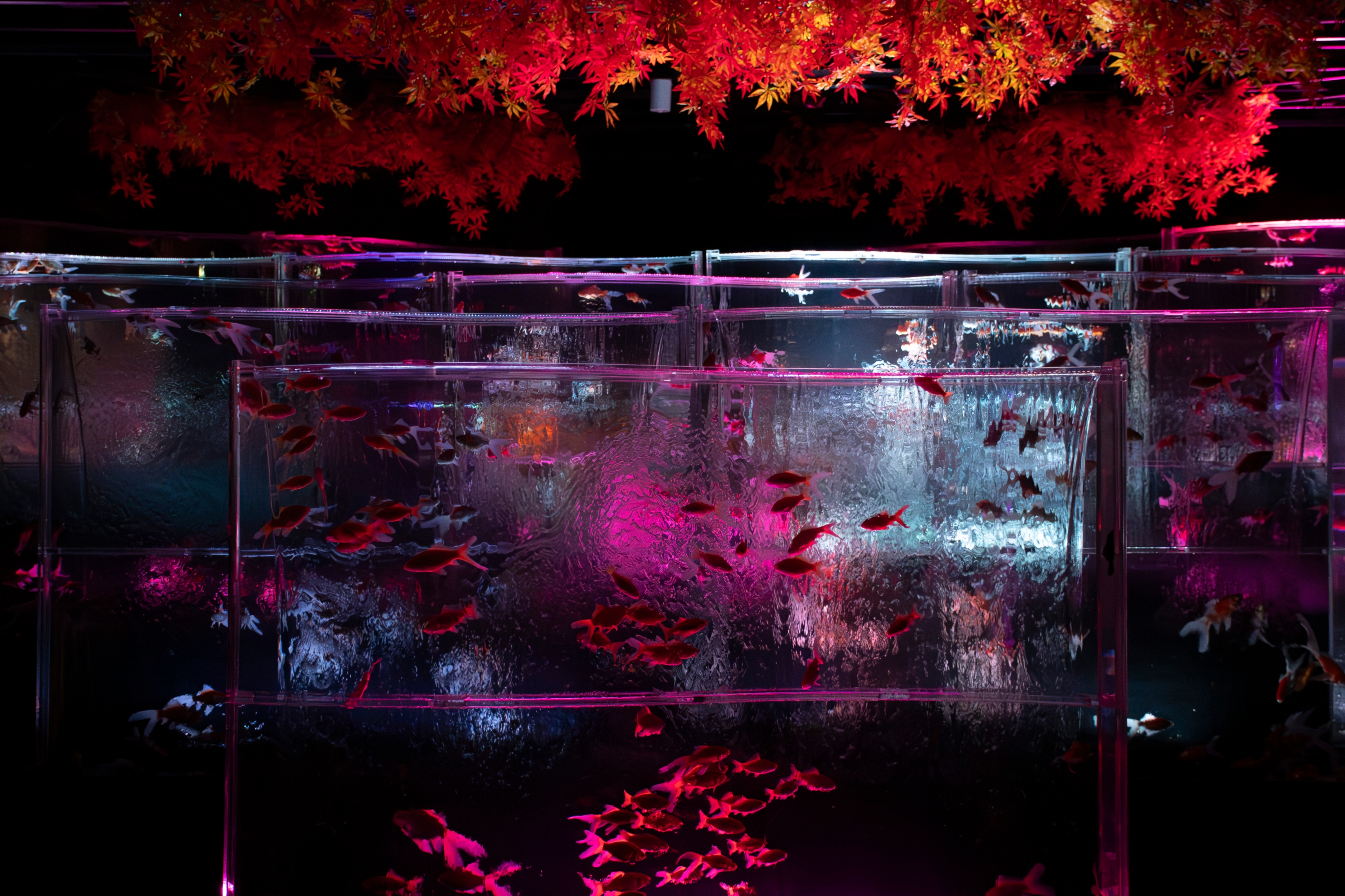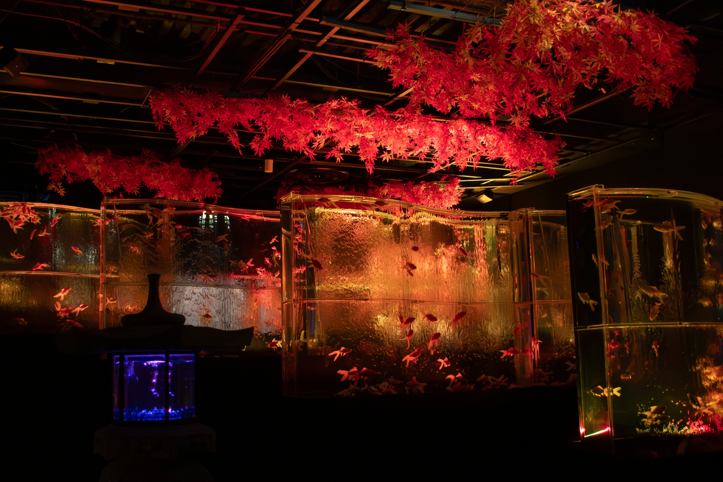 結合高科技聲光效果及摺紙、屏風、和服等日本傳統文化象徵的現代化展示空間,將賞金魚文化昇華至殿堂級藝術展覽,一次滿足藝術愛好者與金魚迷的願望。在夢幻空間中,盡情欣賞可愛又獨特的金魚。