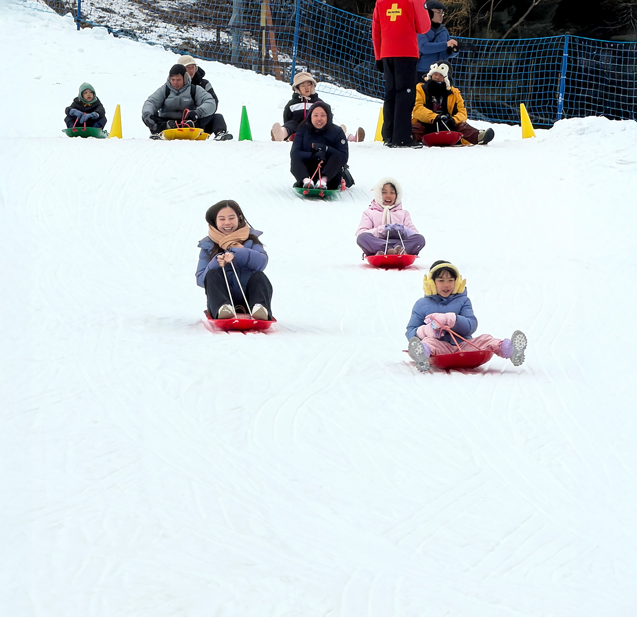 在青陽阿爾卑斯村,您可以享受各種景點和體驗,例如雪橇。