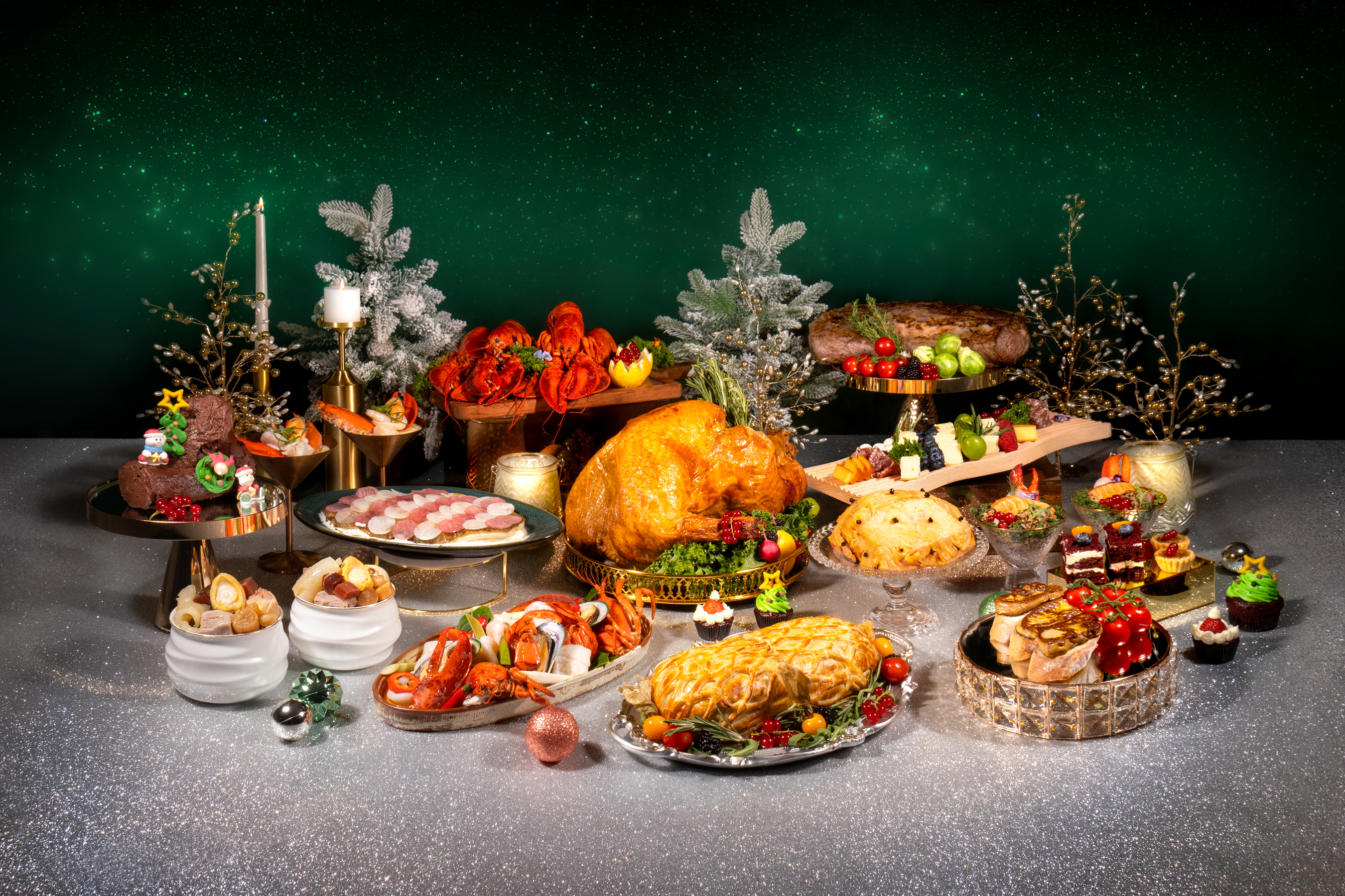 自助晚餐節日美食推介聖誕火雞、蜜汁菠蘿焗火腿、凍火雞碟、聖誕樹頭蛋糕、聖誕杯子蛋糕、紅絲絨蛋糕、核桃批,多款鮮味海鮮包括波士頓龍蝦、加拿大雪花蟹腳、麵包蟹、翡翠螺、青口;肉味濃郁且口感鬆軟的燒肉眼扒;更有視覺至味覺雙重享受的鐵板燒,廚師即席烹調鴨肝多士、虎蝦、牛脷、雞軟骨及多春魚等;搶眼熱葷龍蝦湯、酥炸生蠔、鹹蛋黃金蝦、薑蔥炒龍蝦鉗、蠔皇扣海螺片、香煎芙蓉蟹、龍蝦海鮮茶碗蒸、煎比目魚配白酒忌廉汁(得獎菜式)、紅燒獅子頭;和風系列中有鮮甜爽口赤貝刺身、雜錦角切魚生丼、即場手握壽司;自家製片皮鵝外皮酥脆鬆化且肉質嫩滑;起司蘑菇焗蟹蓋香氣十足令人齒頰留香,饕客們必定大飽口福。