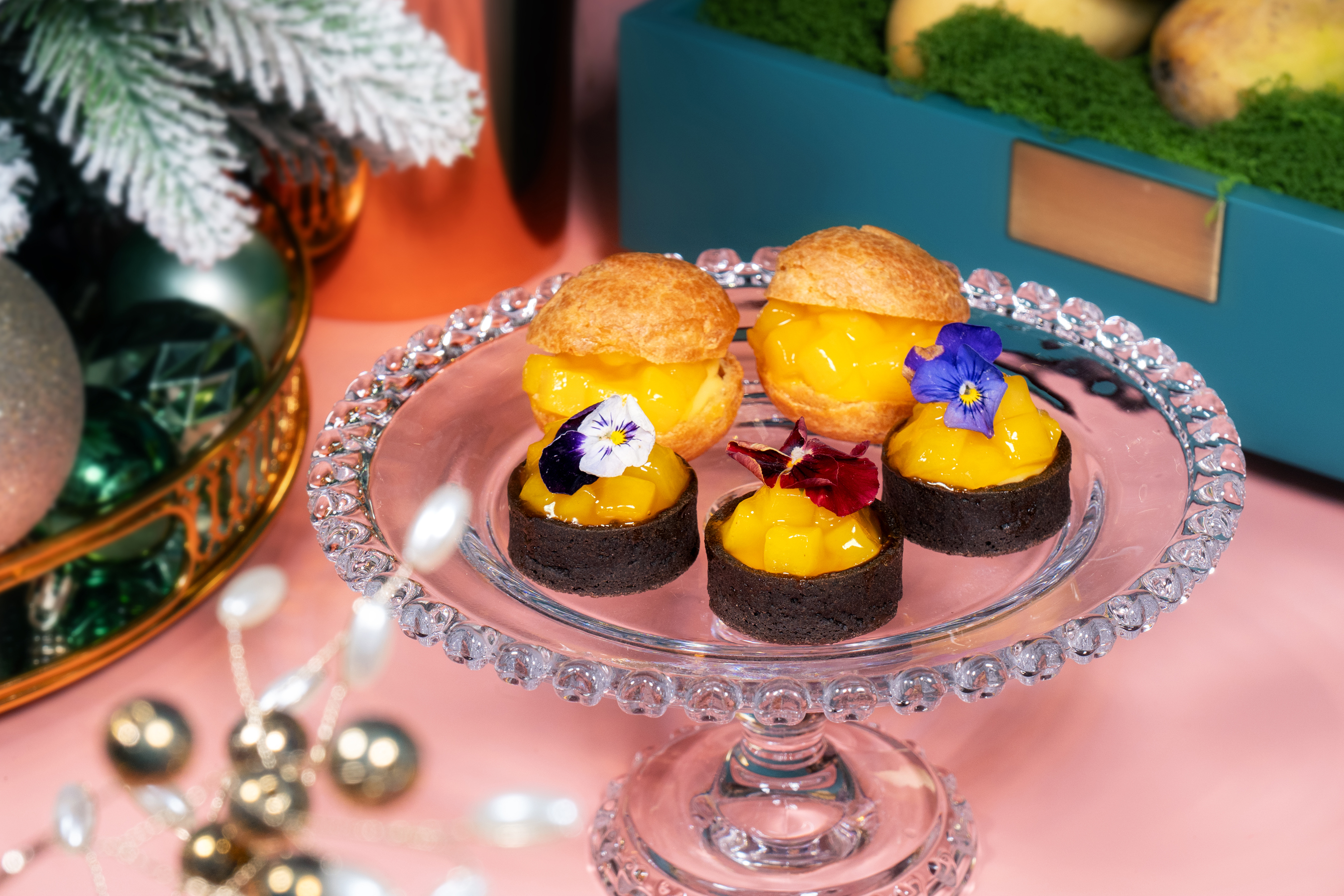 「巧克力蜜柑慕絲蛋糕」將黑巧克力與蜜柑結合,高效抗氧化,助肌膚抵禦自由基,重現緊緻光采;「藍起司撻」含鋅與維他命B,能修護肌底、平衡油脂,重塑柔滑膚質;「芒果覆盆子千層酥」芒果與覆盆子匯聚維他命C,溫和煥膚、提亮膚色,散發透亮光感。