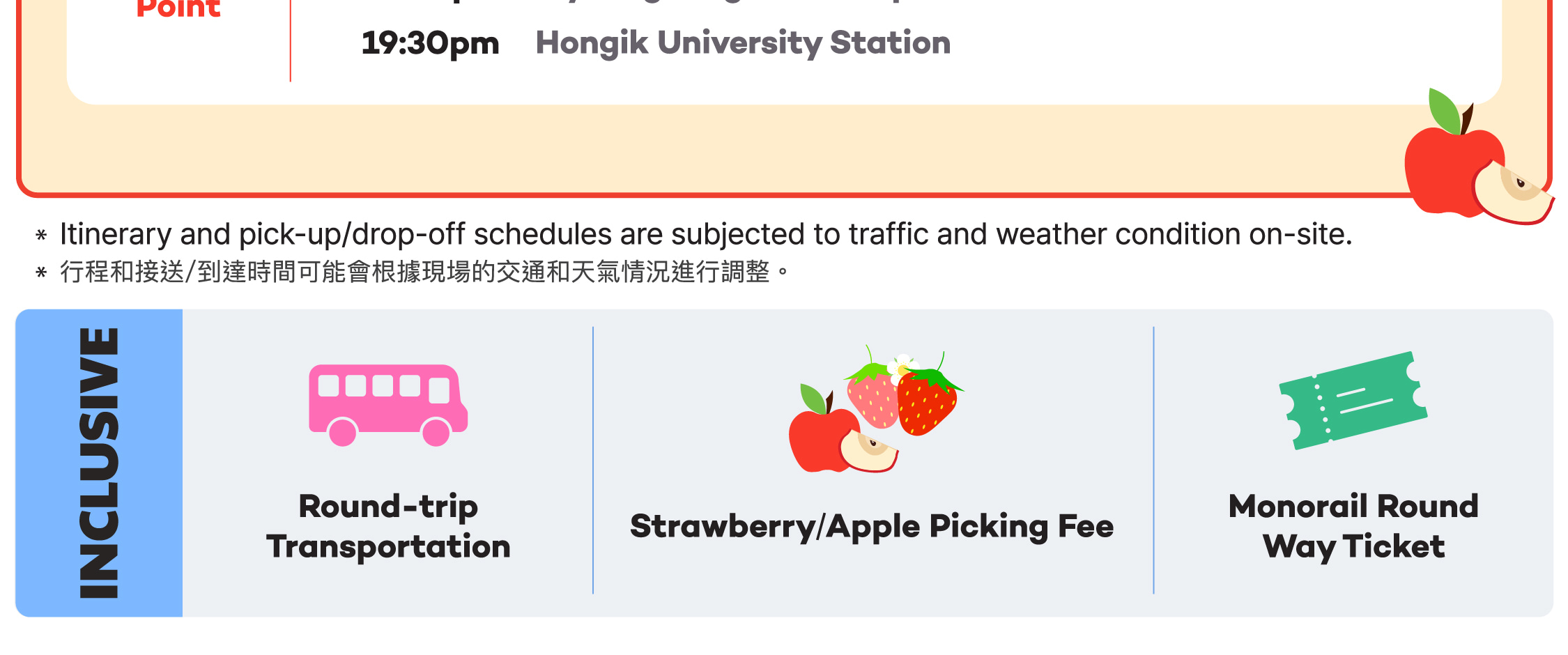 - 🍎蘋果採摘至11月15日。11月16日至30日將改為🍓草莓採摘體驗。