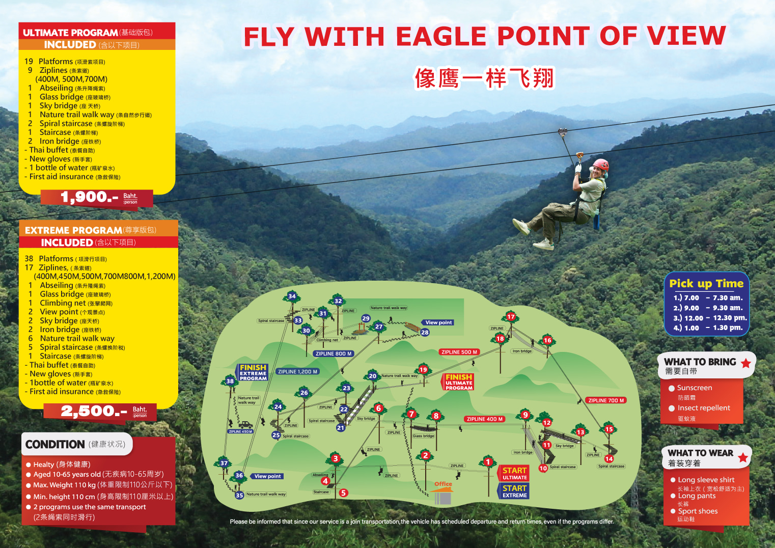 Kingkong Zipline 19個平臺滑索體驗+交通+泰式自助餐