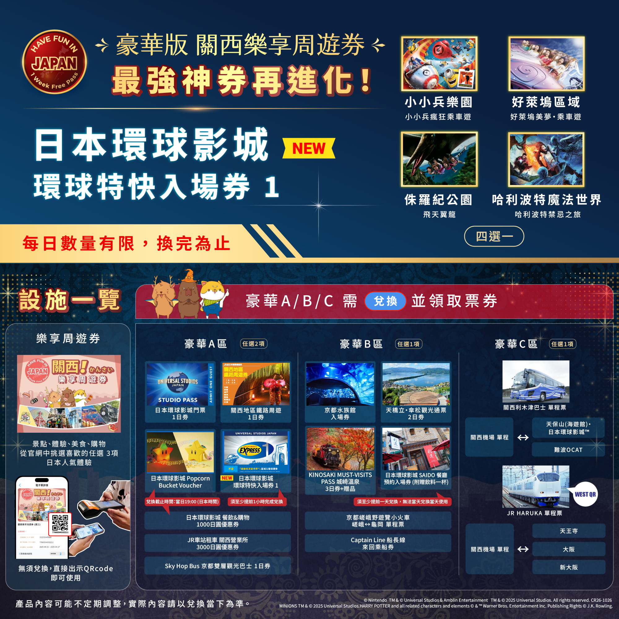 持關西樂享周遊券,輕鬆暢遊大阪、京都、神戶地區人氣設施!