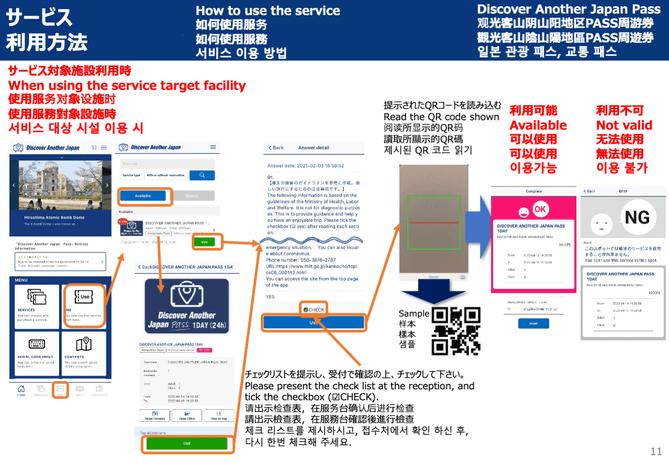 於最初造訪的設施出示讀取QR Code後即可開始使用。