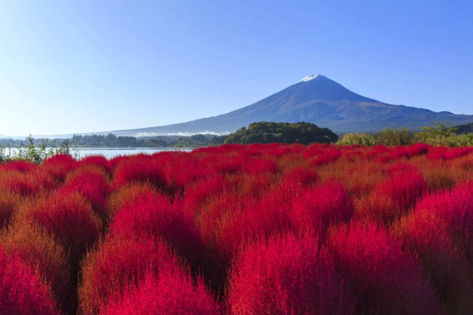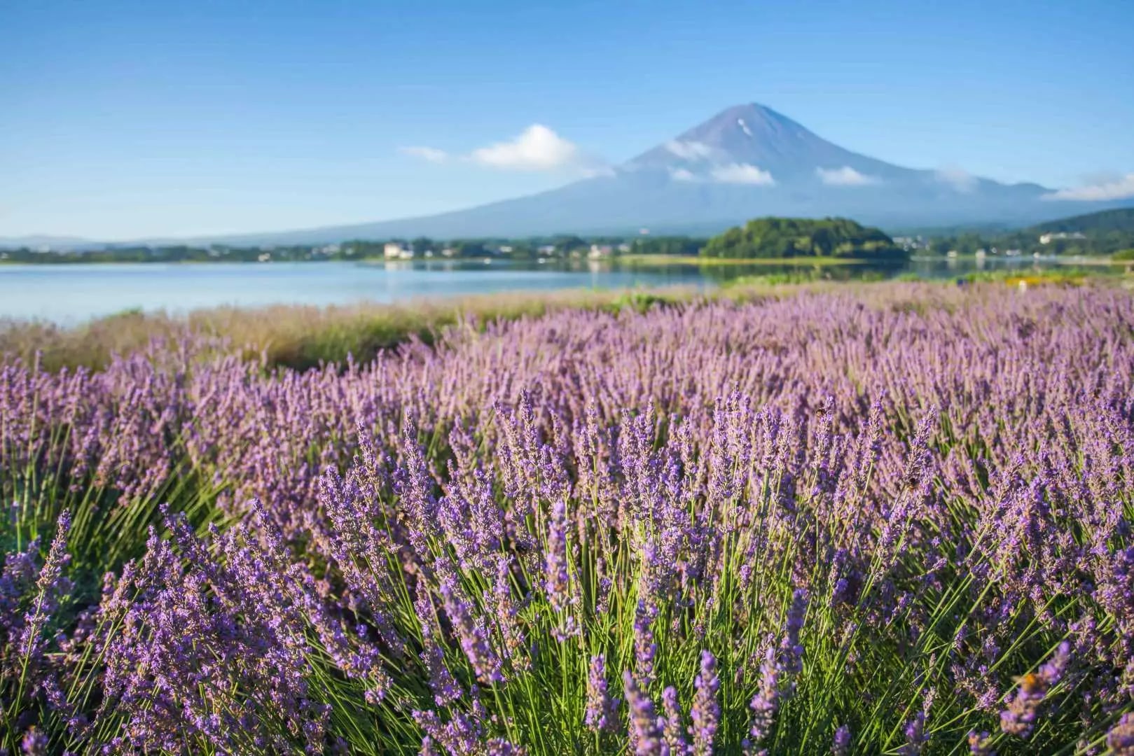 季節性花卉與富士山同框的經典觀景地,春季薰衣草、秋季掃帚草特別壯觀。