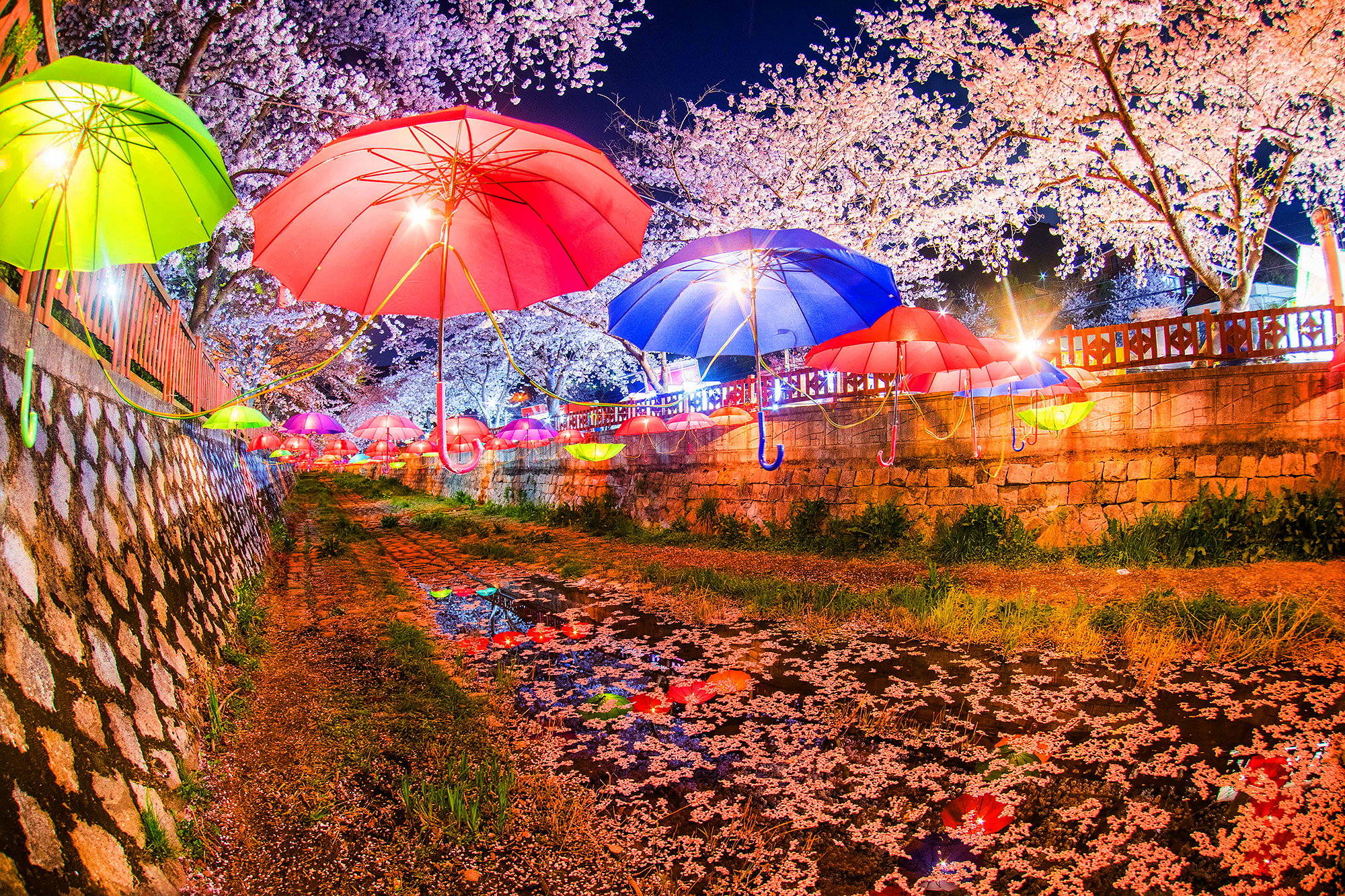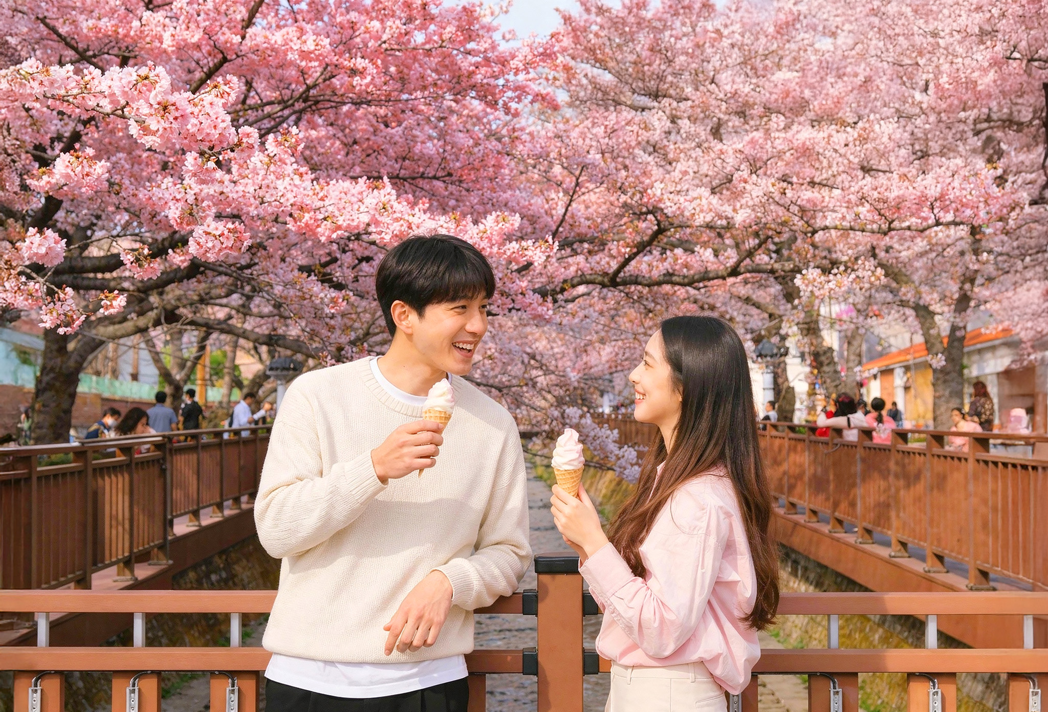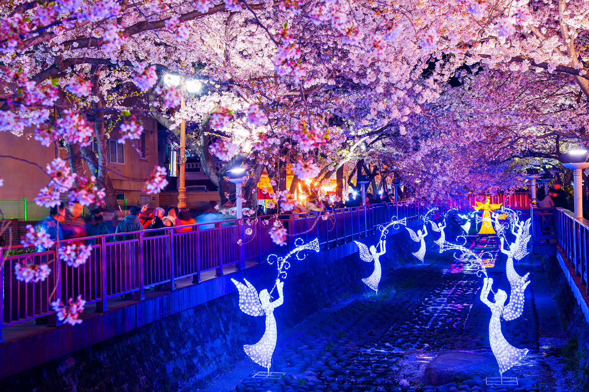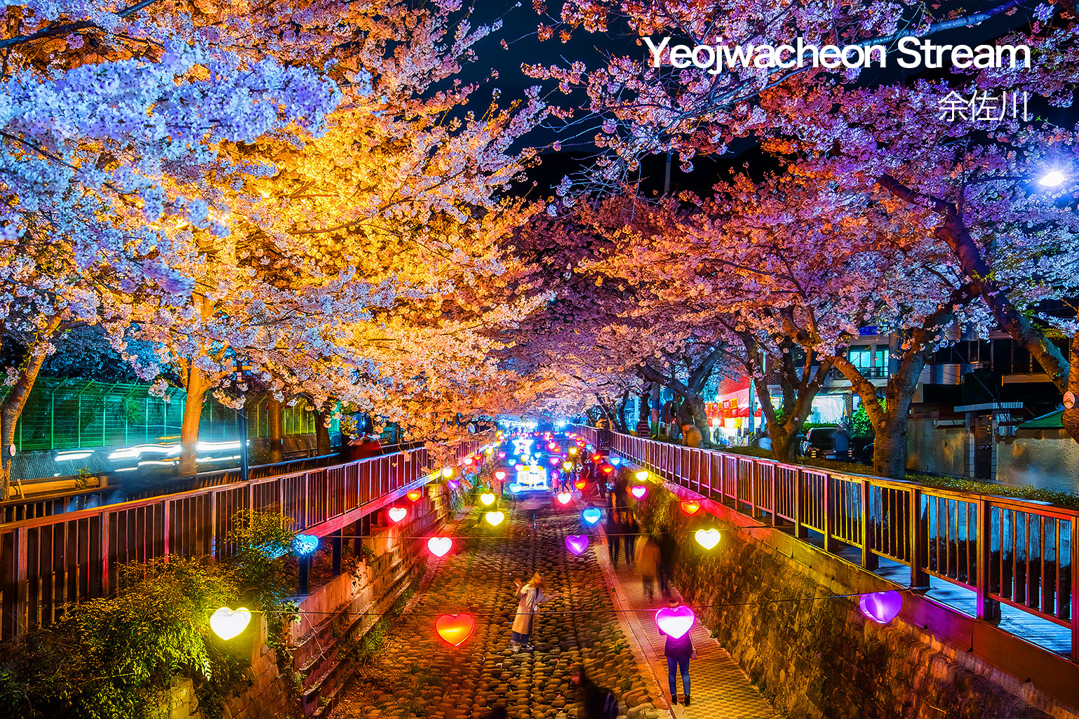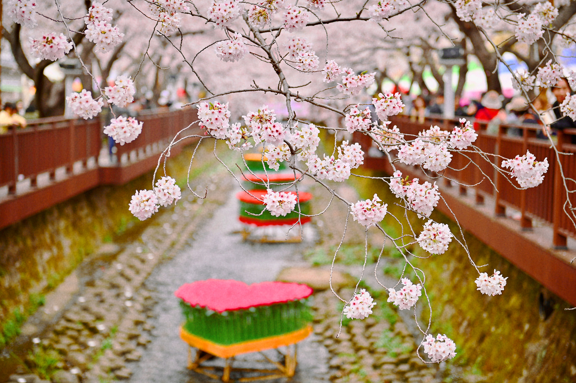 🌸 余佐川 (YEOJWACHEON STREAM):櫻花夾道的溪流,搭配浪漫橋樑,是鎮海春天最迷人的景點。