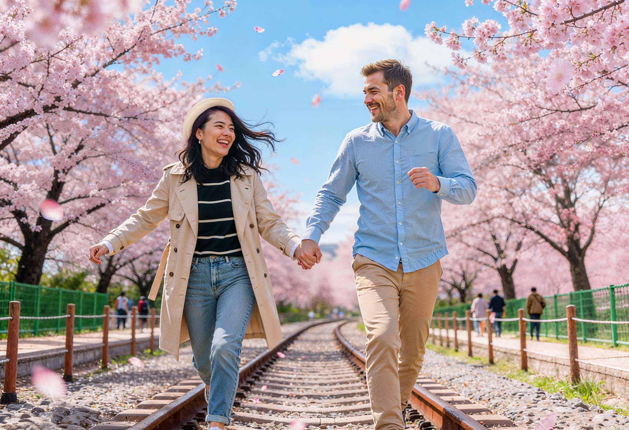這個節日最具代表性的景觀是櫻花隧道。 當火車駛過時,鐵軌就像鋪滿了柔軟的粉紅色花瓣,營造出夢幻般的童話氛圍。