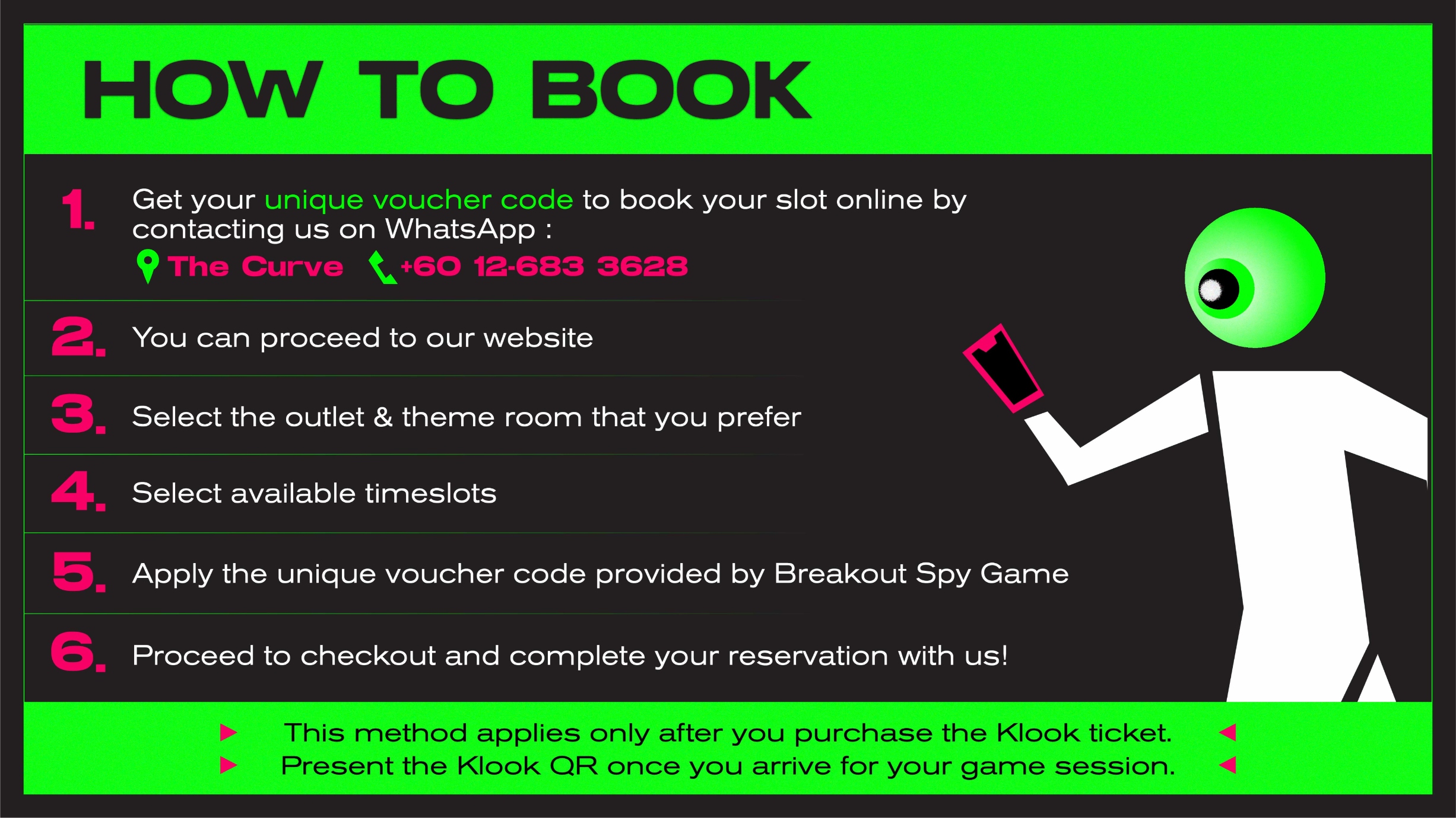 - 結賬後,請WhatsApp當地運營商,瞭解預訂您首選時段的步驟和說明!