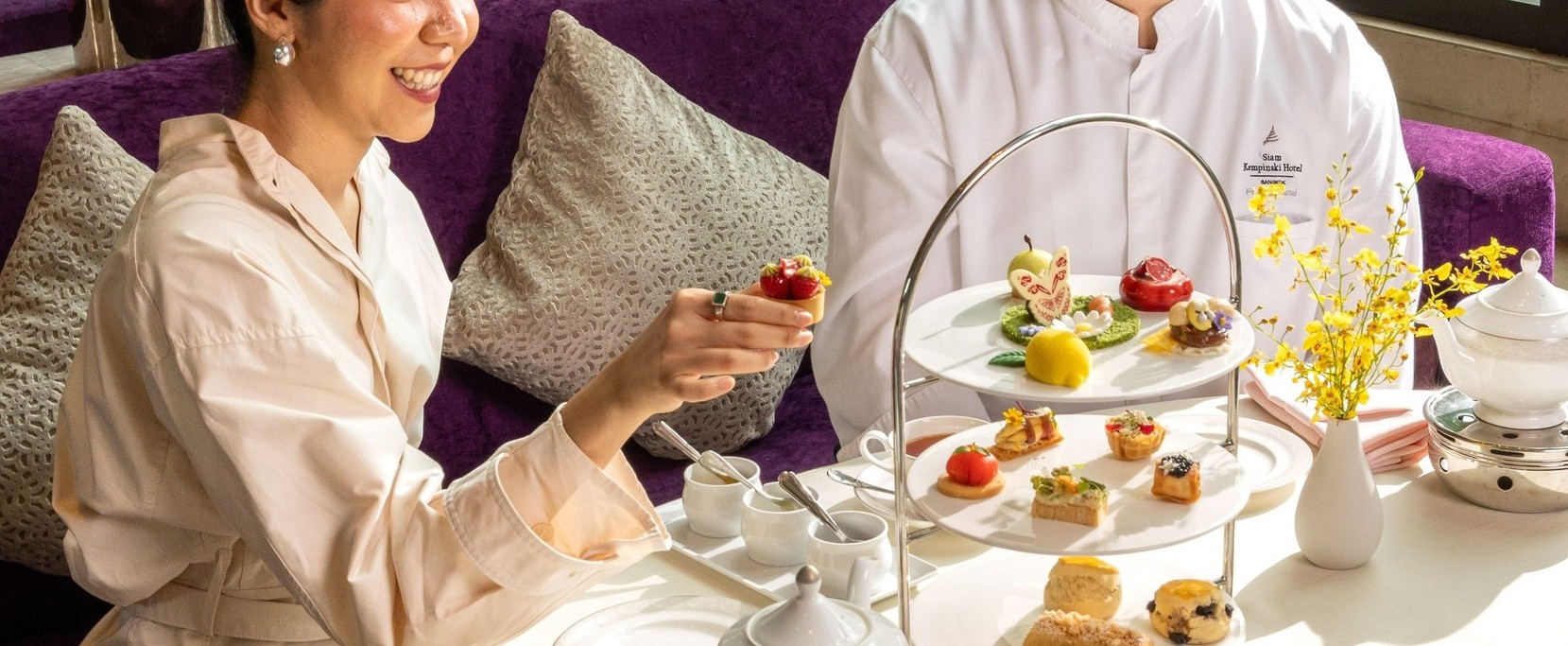 您可以在豪華的曼谷暹羅凱賓斯基酒店內的 1897 酒廊享受精緻的下午茶體驗。休息室氛圍優雅寧靜,是您放鬆身心、逃離城市喧囂的理想場所。客人可以享用精美的下午茶套餐,其中包括美味可口的甜味和鹹味小吃 - 精緻的手指三明治,新鮮出爐的帶有凝固奶油和果醬的烤餅,以及由專業糕點師製作的各種時令糕點。您可以選擇來自世界各地的優質茶來搭配您的美食,或選擇新鮮的咖啡或招牌無酒精雞尾酒。憑藉著無可挑剔的服務和對細節的關注,這種體驗非常適合特別慶祝活動、與朋友共度輕鬆的下午,或只是在曼谷市中心享受片刻奢華。